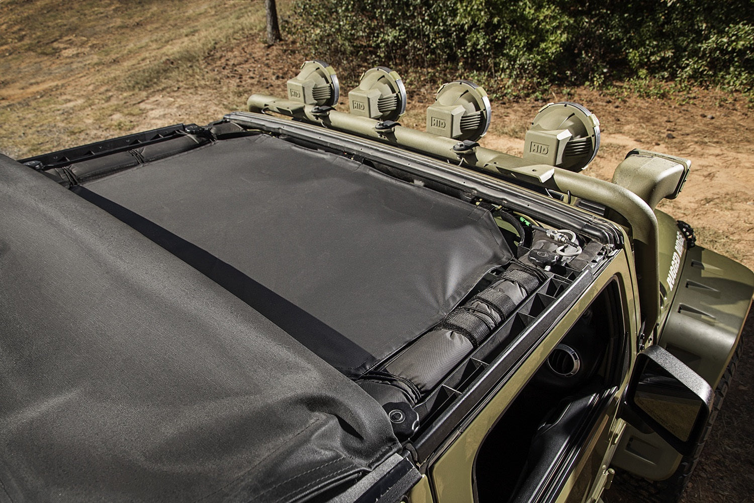 This Total Eclipse Sun Shade for Jeeps without hardtops from Rugged Ridge fits 07-18 Jeep Wrangler JK/JKU.