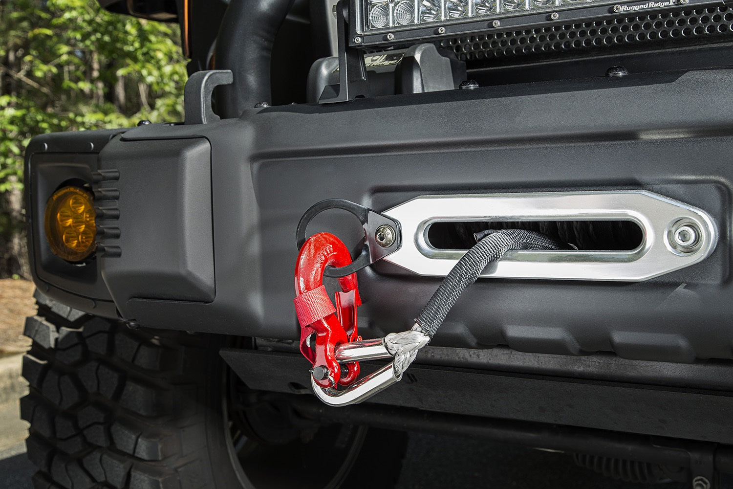 This tow hook holder from Rugged Ridge was designed to be used with heavy duty and performance winches.