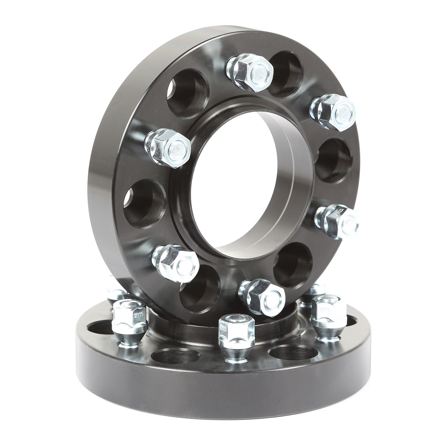 Need to move your wheels out for a little extra space? This set of black hub-centric 1.25- in. wheel spacers from Rugged Ridge has a 6 x139.7 mm bolt pattern and 93 mm center bore. The hub-centric construction ensures the wheel is precisely centered on the axle, minimizing stress on wheel studs, and eliminating the added road vibration common with non-hub-centric designs. Installing these spacers will help fit wider tires, giving your Jeep a wider track and improved stability. Constructed of double-anodized, extra-thick, 6061-T6 aluminum for long life and extra corrosion resistance. All hardware is grade-8 for extra strength.