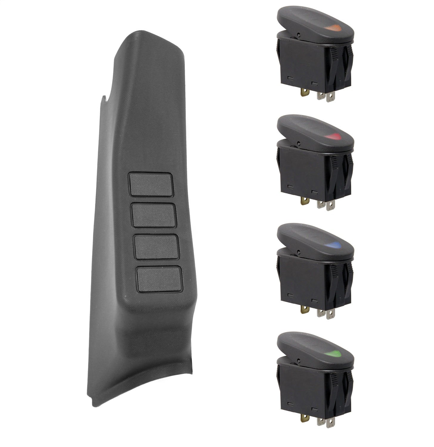 Switch Pod Kit, A-Pillar, 4 Switches, Black, RHD; 07-10 Wrangler JK