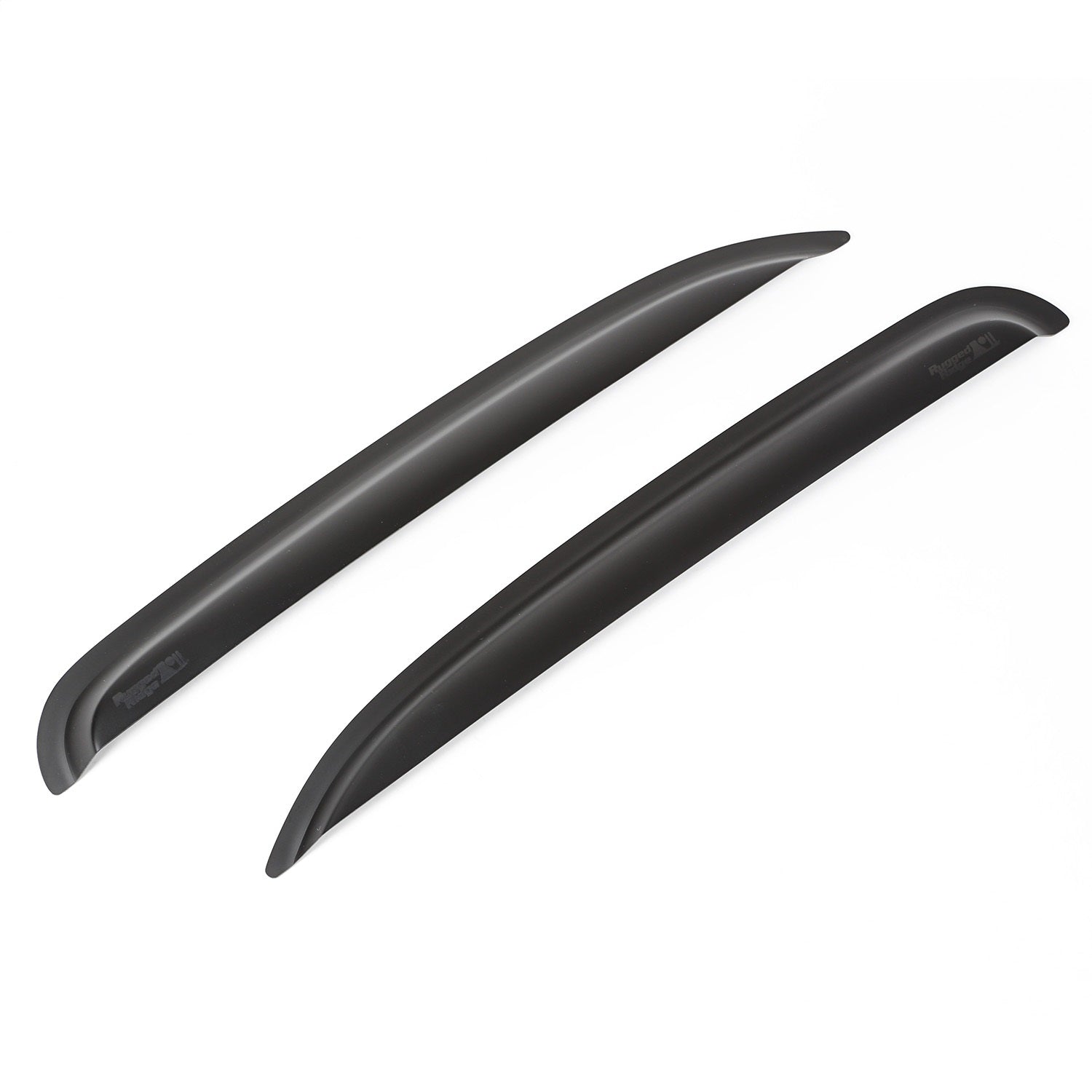 Let the fresh air in and keep the rain out with this pair of rear window visors from Rugged Ridge. These visors feature a durable scratch resistant 2mm thick acrylic and a low profile design for a precise fit. These matte black visors offer a stylish look for the exterior of your vehicle while helping to channel airflow over your vehicle to reduce wind noise when the windows are open, for a quiet and comfortable ride. Attaches using double-sided automotive grade adhesive tape.
