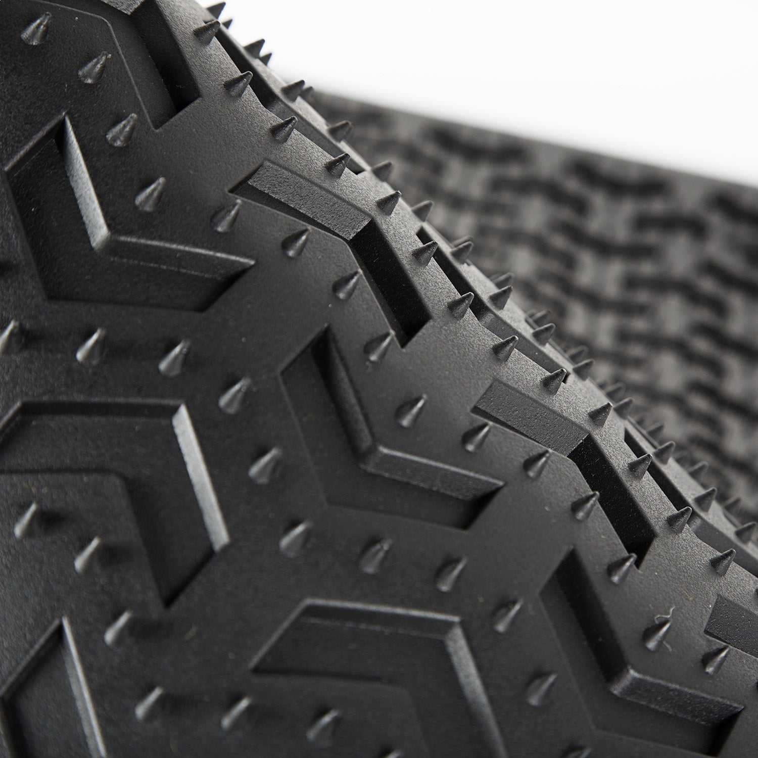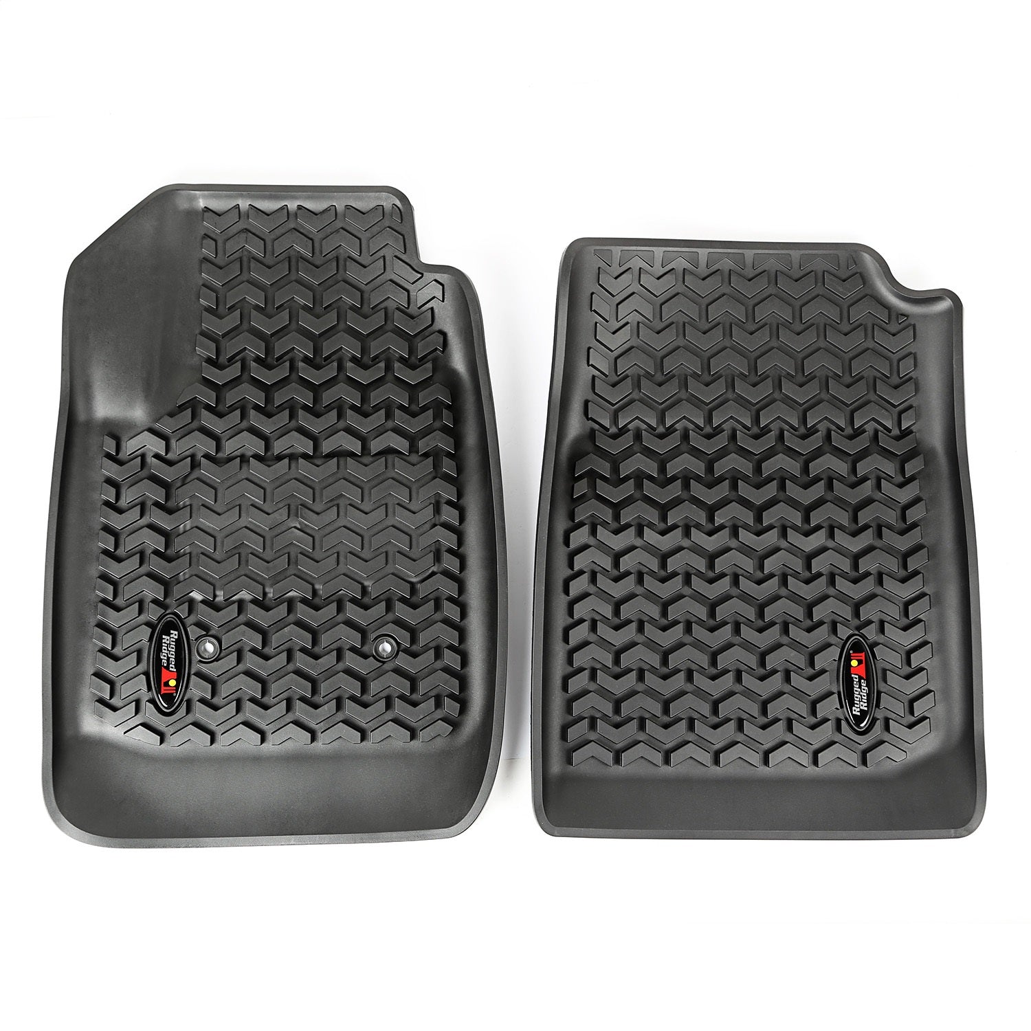 Need an affordable solution to keep the floors of your vehicle looking factory fresh? Rugged Ridge has you covered with this front set of black floor liners. Featuring a durable OE-quality thermoplastic material that can withstand the rigor of daily abuse, each liner is perfectly contoured to your vehicle's floor for precise secure fitment (floor hook attachment where applicable). The raised lip captures all spills, water and debris keeping your interior pristine. Features a chevron shape patented deep tread technology.