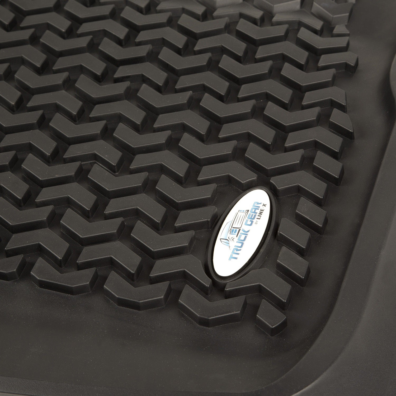 Rugged Ridge Floor liners provide complete protection for the cabin floor of your vehicle while keeping it looking factory fresh. Each liner is perfectly contoured to your vehicle's floor for precise secure fitment (floor hook attachment where applicable). The raised lip captures all spills, water and debris keeping your interior pristine. The Chevron-shape patented Deep Tread Technology channels liquid away from your shoes keeping them dry. Made of a durable OE-quality Thermoplastic material that can withstand the rigor of daily abuse. Backed by our Limited Lifetime Warranty. Patent No. 8,163,369; D627,285; 2,699,641