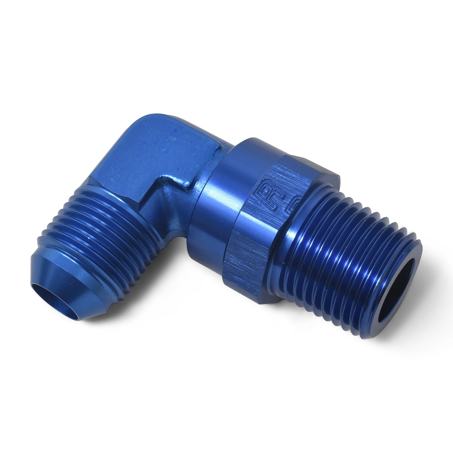 90 Deg. Male AN To Male Swivel NPT Adapter Fitting; Blue Anodized; -10AN; 1/2 in. NPT;