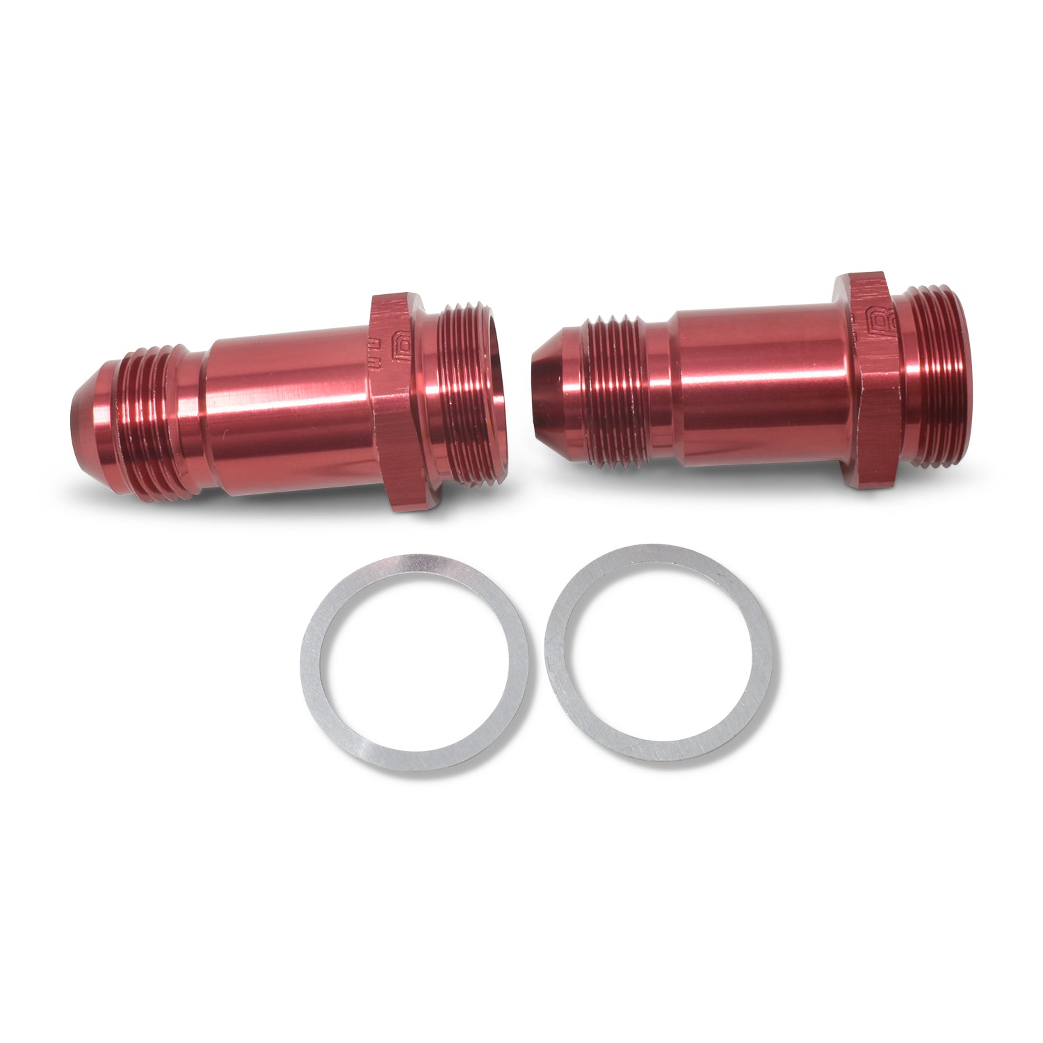 Carburetor Adapter Fitting; Red; -6AN; Fits Holley Dual Feed 750 To Dominator 1350 Series; Length 2 in.; 2 pc.;