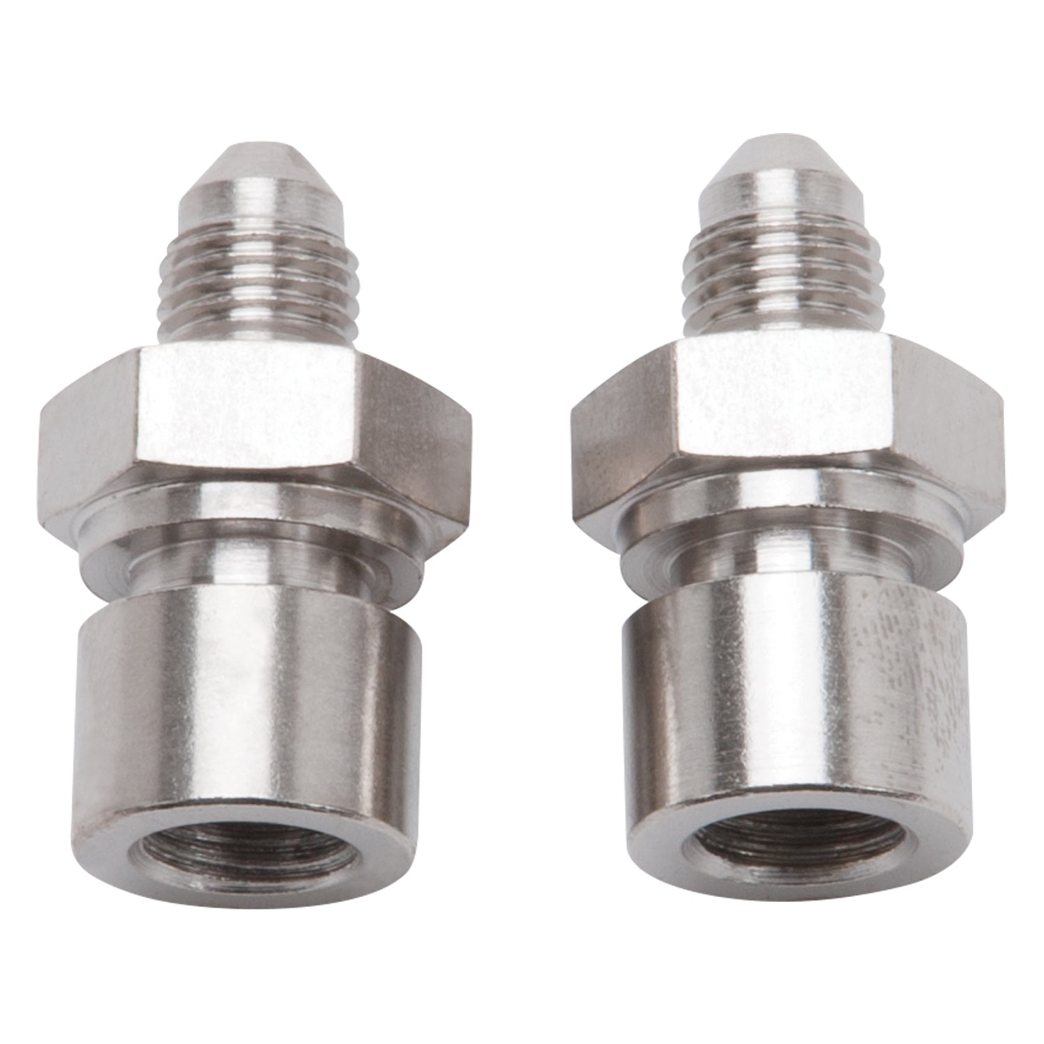 Russell's wide variety of lightweight aluminum adapter fittings allow for the connection of Russell hose ends to almost any component. Adapters are offered in standard thread, metric thread and pipe thread to fit most popular oil pumps, fuel pumps, fuel filters plus a variety of other common components. To compliment the looks of the hose installation, three finishes are available - ultra-bright Endura, traditional blue anodized or our new black anodized fittings.