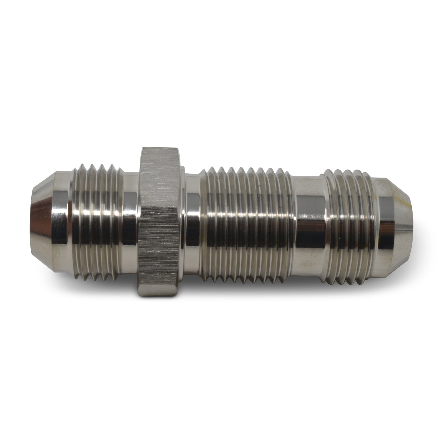 Fitting - Bulkhead - Straight - 8 AN Male to 8 AN Male Bulkhead - Aluminum - Nickel Anodized - Each