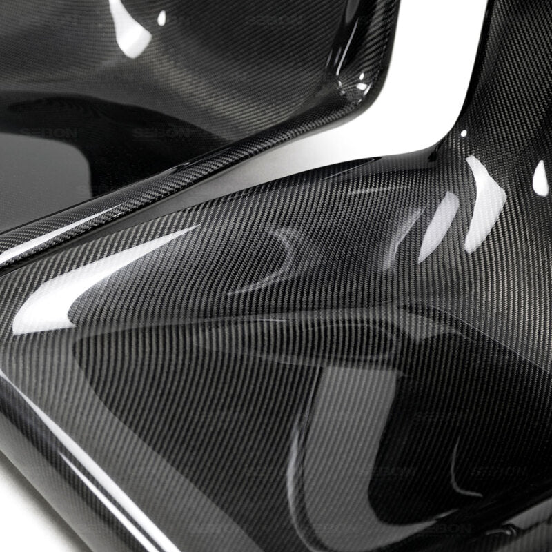 Seibon Carbon components are carefully hand-crafted using only the finest materials. Our production team offers superior craftsmanship with over 20 years of experience working with carbon fiber. Every component is constructed with a consistent weave pattern. Our production processes allows exceptional carbon/resin ratio, creating high product stiffness that also leads to extra strength. For a stunning finish, our products are coated with a glossy clear coat that does not chip or flake. We meticulously inspect all of our components and stand firmly behind our products so that you can enjoy peace of mind with every genuine Seibon Carbon product. Creating performance-oriented products that help shed unnecessary weight without sacrificing style is our specialty. Race after race, Seibon products have proven to be as strong as the driver's ambition to win, thus making Seibon Carbon the preferred brand among professional drivers.