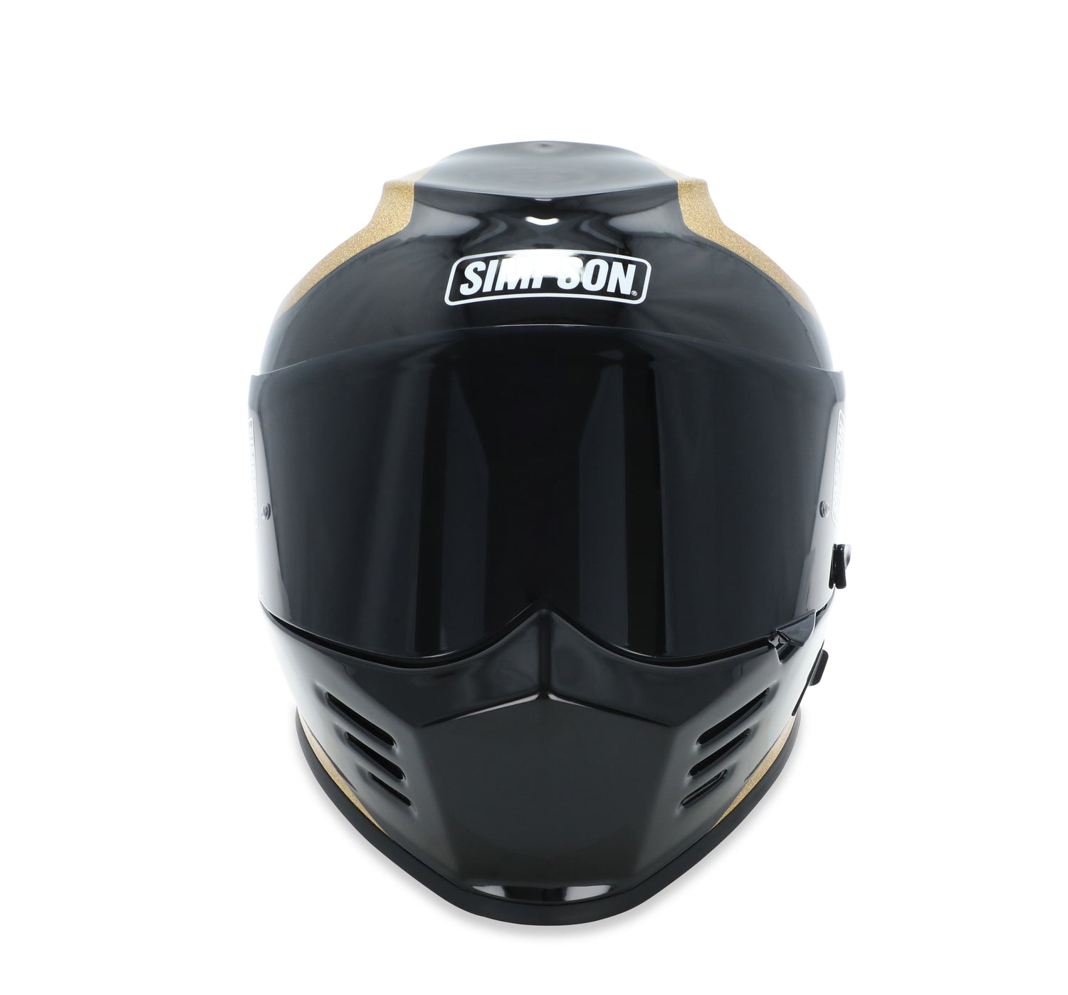 Simpson Ghost Bandit HelmetDesigned 100% with motorcycle riders in mind, the Simpson Ghost Bandit Helmet blends the classic tough-guy Bandit styling combined with features riders have come to expect from a proper lid.The Ghost Bandit is prepared to handle just about any type of riding while providing edgy styling and complete comfort. The lightweight shell has been aerodynamically tuned for motorcycle riding and is fully ventilated for maximum airflow when you need it most. Integrated speaker and microphone pockets make it easy to install your favorite communication device and a drop-down sun visor makes riding through changing light conditions as easy as flipping a switch.If you love the look of a Simpson Helmet but want the creature comforts of a touring helmet, the Ghost Bandit is for you.Note:The Ghost Bandit runs slightly small. If you are between sizes, order the larger size. Helmet ships with one clear face shield installed, additional face shields may be purchased separately.