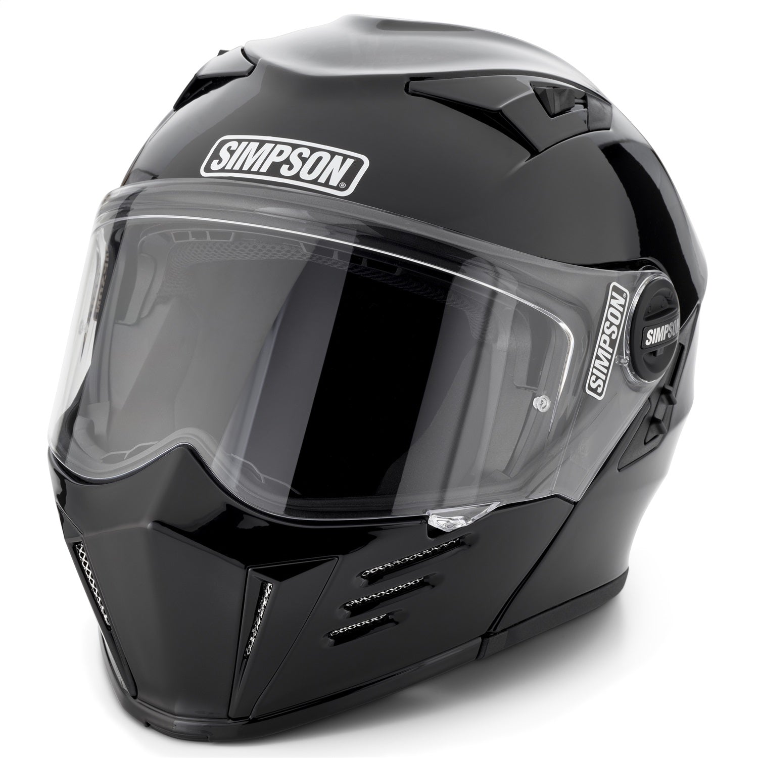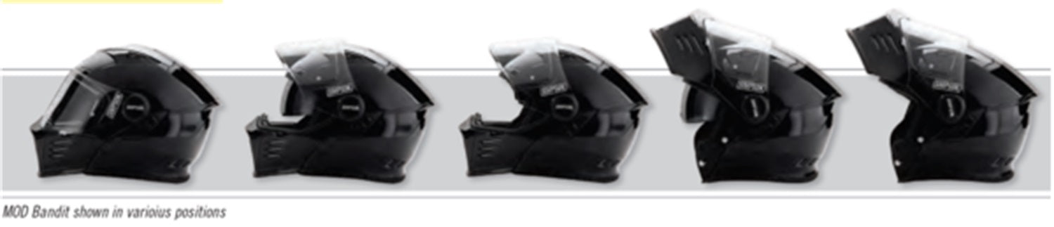 Modular function and convenience meets Simpson style and attitude. One hand modular function, communication system ready, Pinlock system compatible, and internal sun shield are highlights of the new Mod Bandit. Ready to ride across town or around the world, the Mod Bandit offers the function and style you are looking for. Helmet ships with one clear face shield installed, additional face shields may be purchased separately.