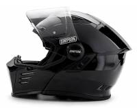 Modular function and convenience meets Simpson style and attitude. One hand modular function, communication system ready, Pinlock system compatible, and internal sun shield are highlights of the new Mod Bandit. Ready to ride across town or around the world, the Mod Bandit offers the function and style you are looking for. Helmet ships with one clear face shield installed, additional face shields may be purchased separately.