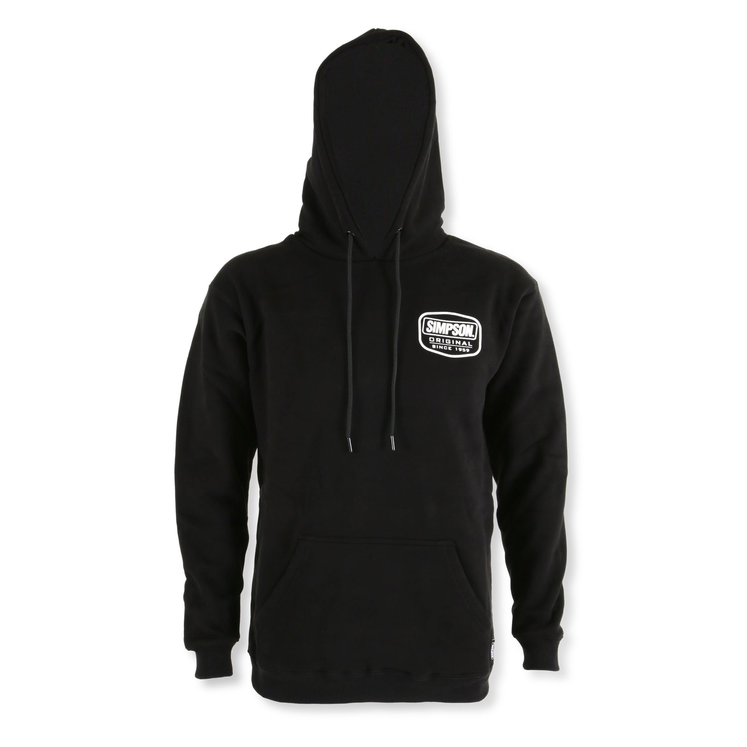 Hoodies are custom made for Simpson, with Simpson branded labels, Simpson Embossed Aglets on the strings, and custom Simpson tags on the pockets. Hoodies are 50/50 cotton/poly with brushed fleece on the interior, they are super soft and warm.
