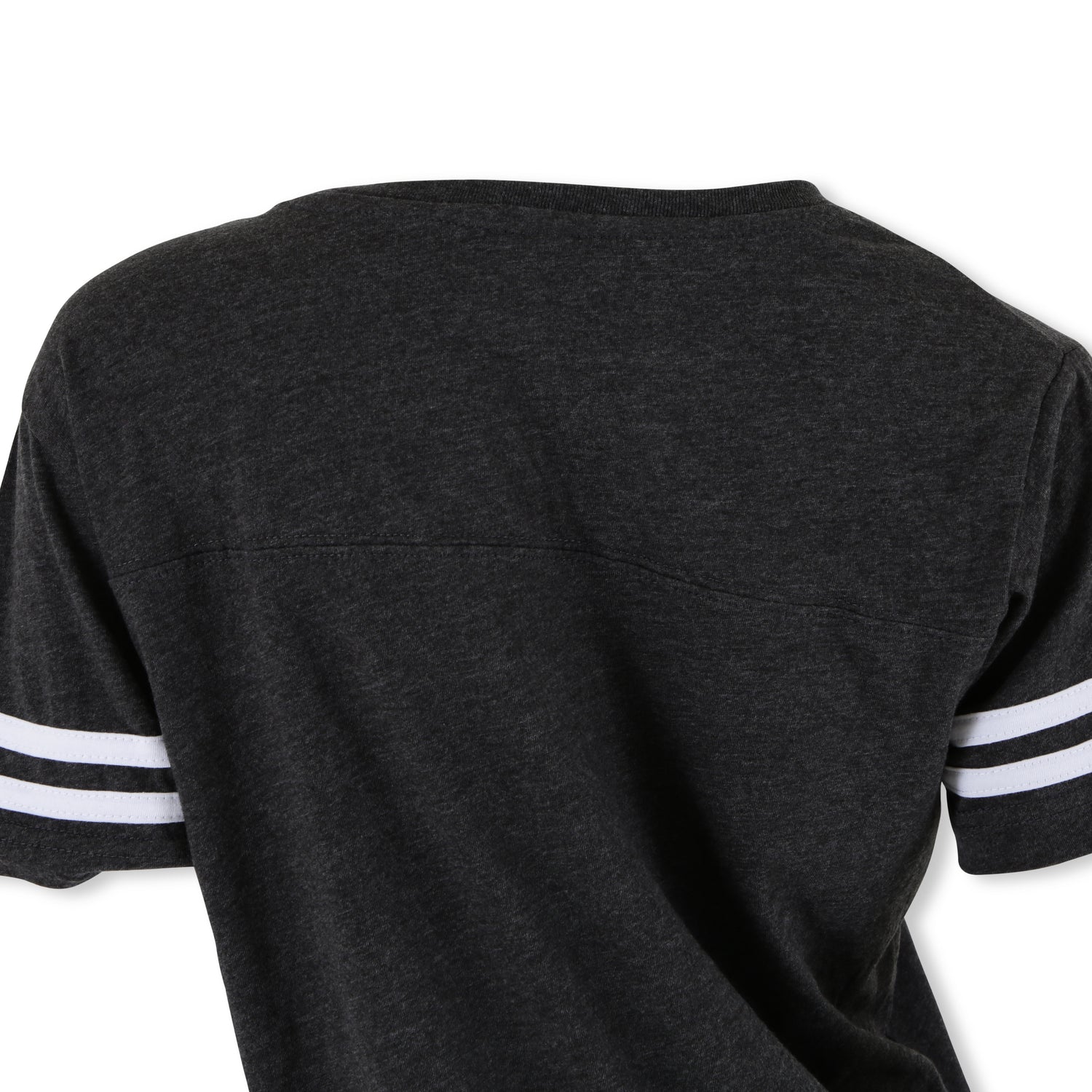 Fun v-neck T-Shirt with striped sleeves for style and 60/40 combed ring-spun cotton/poly blend for comfort.