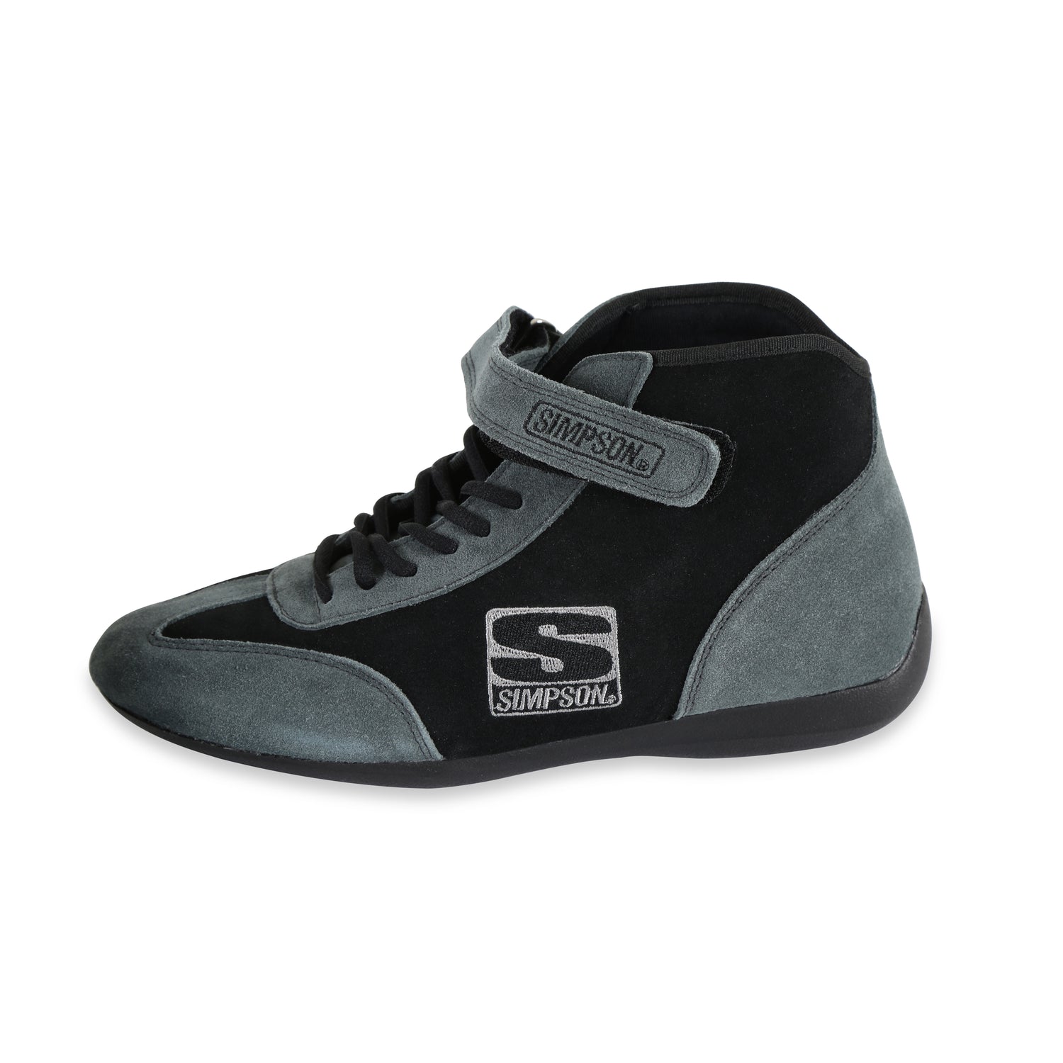 The Simpson Racing Midtop Shoe is SFI certified and available in an attractive black and grey two-tone design.