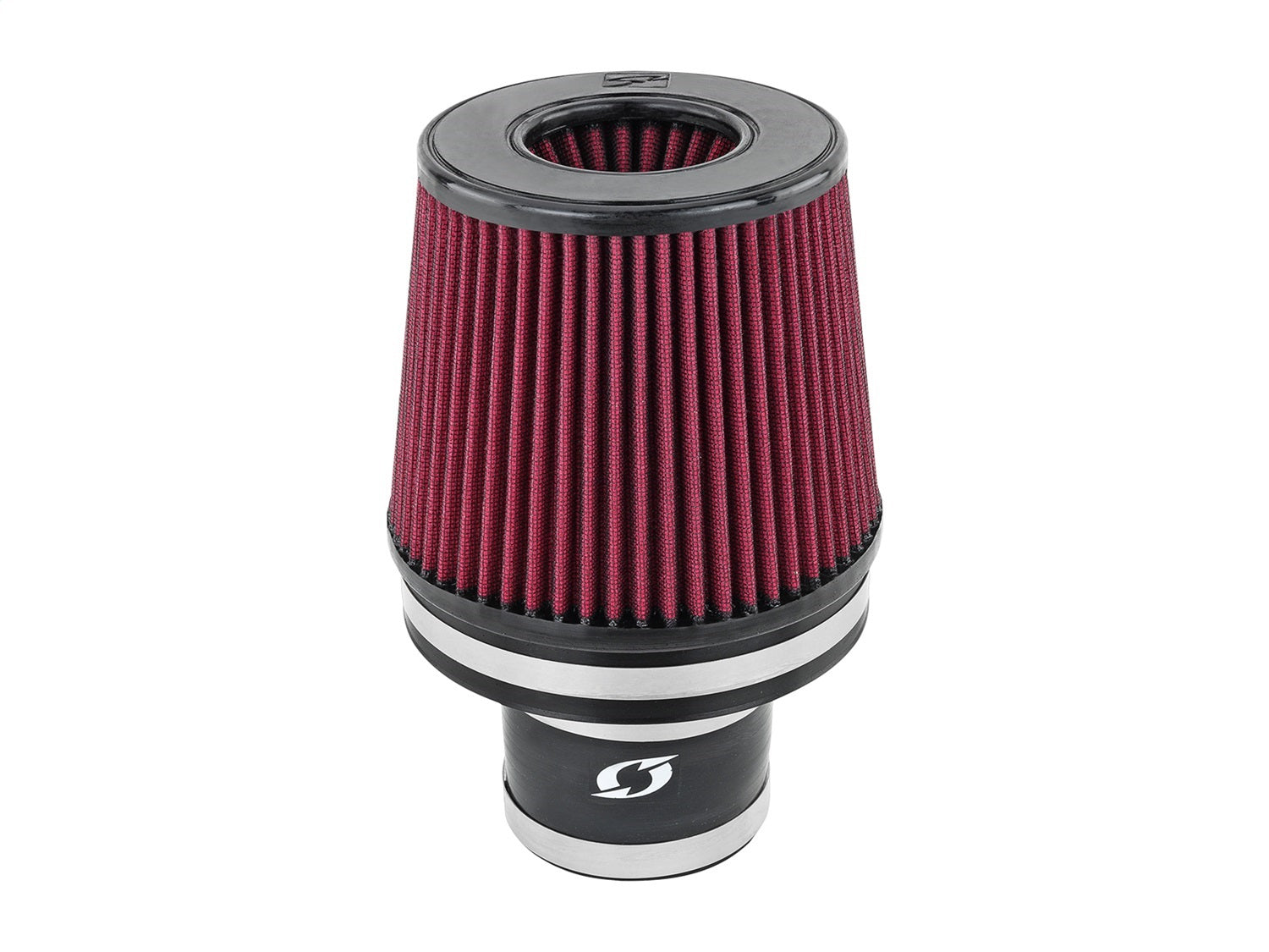 The Skunk2 Universal High Velocity Intake Kit reduces heat soak and maximizes airflow and velocity for any induction system. The kit utilizes a massive 6.8 in. diameter high-flow low-restriction air filter that features a unique double-cone design where the inverted inner filter cone not only increases the filter surface area and air flow capacity, it also helps reduce turbulence inside the filter and guide the incoming air to achieve higher flow rates and velocities. Included with the filter is a unique Composite Velocity Stack that incorporates golf ball like dimples on the surface. These dimples create an energized boundary layer that reduces surface drag and allows air to stay attached as it curves into the bell mouth. The result is higher air velocities and increased air mass delivery to the engine. When we flow tested a conventional air filter design against the Skunk2 filter and used advanced CFD analysis program, our filter flowed 20% more air-mass, which translates to significantly less restriction the engine sees.