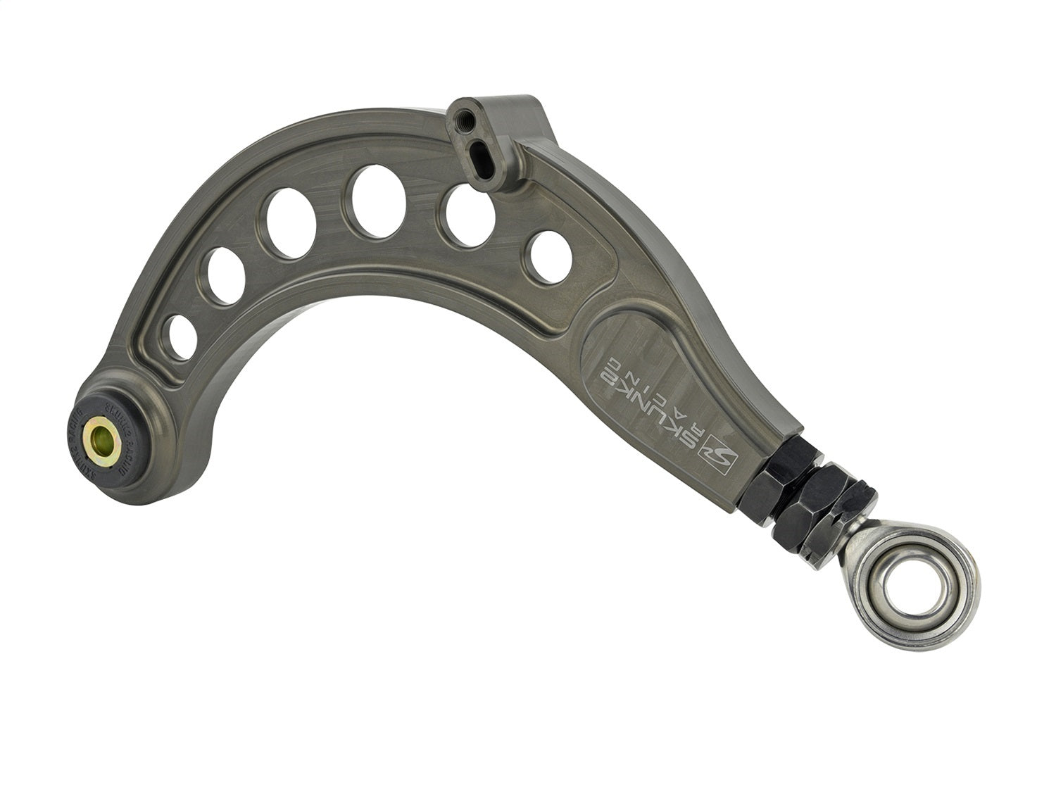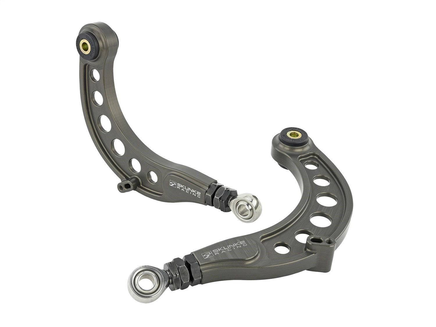 Hard Anodized Rear Camber Kit for the 2016-2020 Civic is based off of the same adjustable camber kit technology the company has been using on its own race cars for more than a decade. Thanks to the new and unique telescoping, opposing-thread design, camber adjustments can now be made without having to disconnect the arm from the chassis. Simply loosen the jam nuts and twist for easy and fast positive or negative camber adjustments. Rear Camber Kit is a must-have for enthusiasts looking to fine-tune their suspension or correct negative camber introduced from lowered ride heights. With the ability to adjust both positive and negative camber, enthusiasts can reduce abnormal tire wear and significantly improve handling and overall stability. Each Skunk2 Rear Camber Kit is constructed from forged alloy steel, aircraft quality 7075 aluminum, and plated for exceptional corrosion resistance. Each kit includes Skunk2s industry-leading, low-deflection polyurethane bushings and spherical bearings that greatly improve OEM suspension geometry by increasing freedom of motion on multiple axes simultaneously and eliminating suspension bind.
