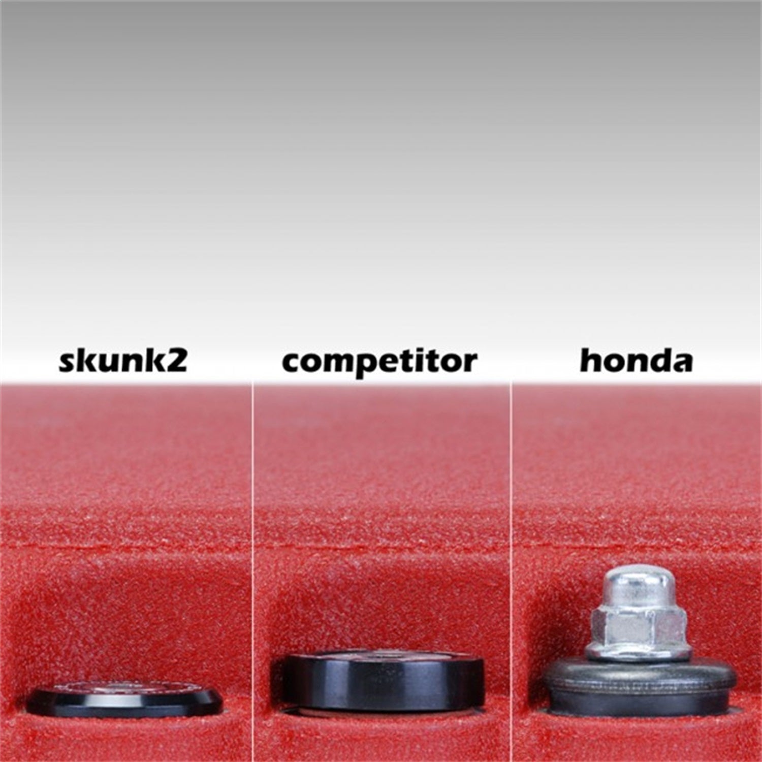 Skunk2 is proud to introduce the most unique, low-profile dress-up hardware you've ever seen. An original design, Skunk2's Low Profile Valve Cover Hardware kits are the only ones designed specifically for B-series valve covers. Low Profile Valve Cover Hardware kits are a comprehensive design, featuring specially engineered 'standoffs' that include provisions for Skunk2's unique, low-profile washers and flush-mounted, stainless steel hardware. Each kit includes 12 low-profile washers and 12 flush-mounted, stainless steel bolts. All kits are compatible with OEM valve covers as well as OEM and most aftermarket spark plug wire covers, including those from Skunk2. Each OEM-grade standoff replaces the factory mounting studs, allowing for the camshaft caps to be secured to factory specifications. No other valve cover kit available does this. A series of Viton O-rings and the appropriate standoff extensions are included with each kit to ensure a leak-free seal and OEM fit and finish. Only Skunk2's 40-piece Low Profile Valve Cover Hardware kits include washers and standoffs for all eight mounting points as well as for fastening most spark plug wire covers into place. And only Skunk2 offers the most low-profile washers and bolts around, measuring more than 75% thinner than the factory washer and nut combination. Skunk2's Low Profile Valve Cover Hardware kits are manufactured from 6061-T6 aluminum and are available for B-series VTEC engines in black, blue, gold, purple, red, and clear hard-anodized finishes, and feature Skunk2's classic, laser-etched logo. Skunk2 employs the same design and manufacturing methods for all of its Fine Tuning accessories as it does for its top-of-the-line racing components. Skunk2's Low-Profile Valve Cover Hardware kits help put that unique finishing touch onto the vehicle you work so hard to make perform well, and we make every effort to ensure that their style is consistent with our rich racing heritage.