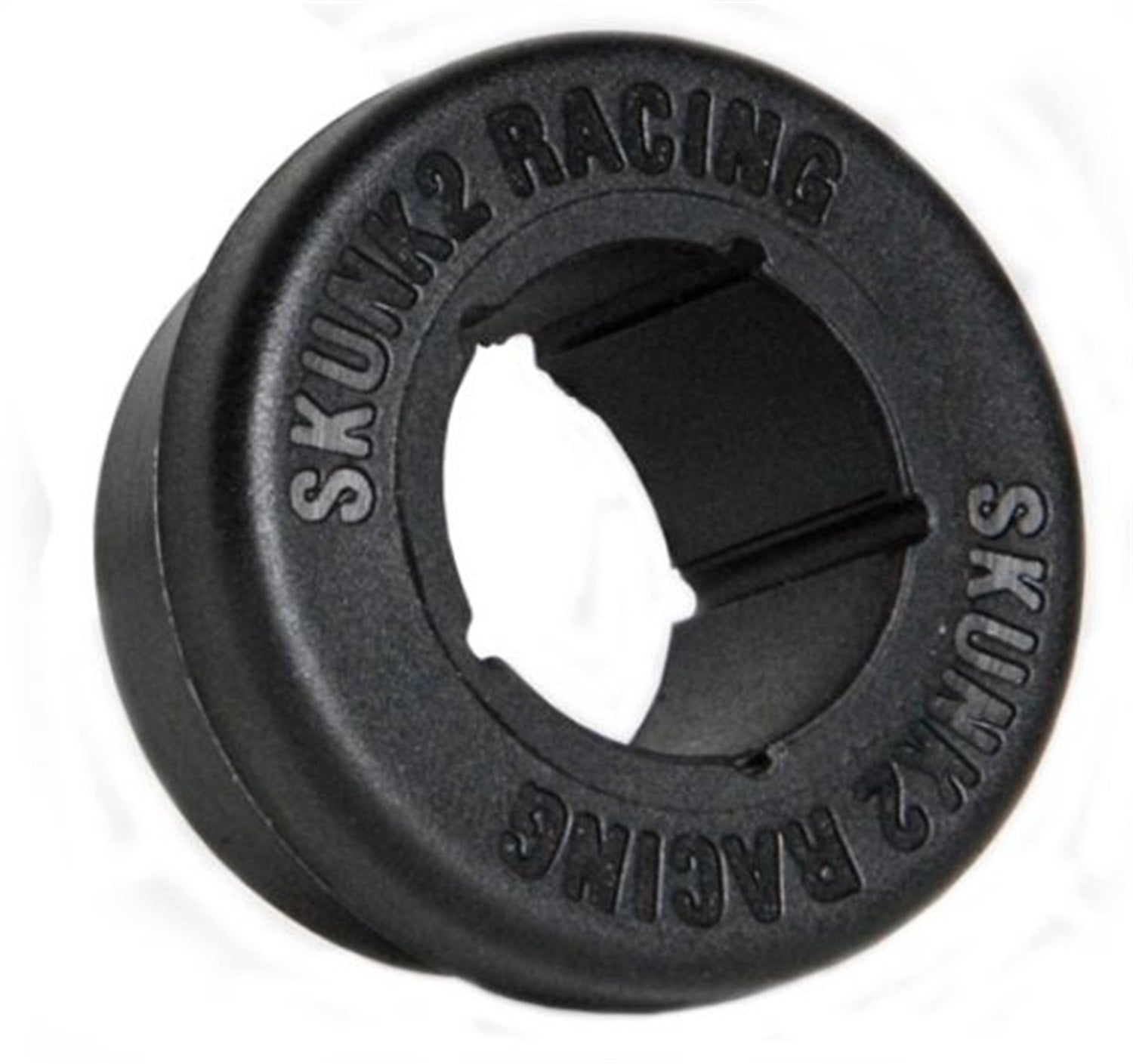 Skunk2s redesigned, low-deflection, polyurethane bushings are available separately and are compatible with all Skunk2 Rear Lower Control Arms and Rear Camber Kits. Important: Purchase includes two bushing halves. Each Rear Lower Control Arm and Rear Camber Kit mounting point requires two bushing halves. Genuine Skunk2 polyurethane bushings act as bearings for quicker response and a more positive feel when compared to other manufacturers bushings. Tearing and unseating problems normally associated with other fixed rubber bushings are eliminated by allowing the arm to rotate freely about the bushings. Fewer grooves within the inner diameter as well as special, radius-cut backsides help them last longer and avoid tearing and unseating. Thanks to the new design, bushing failures have been eliminated.