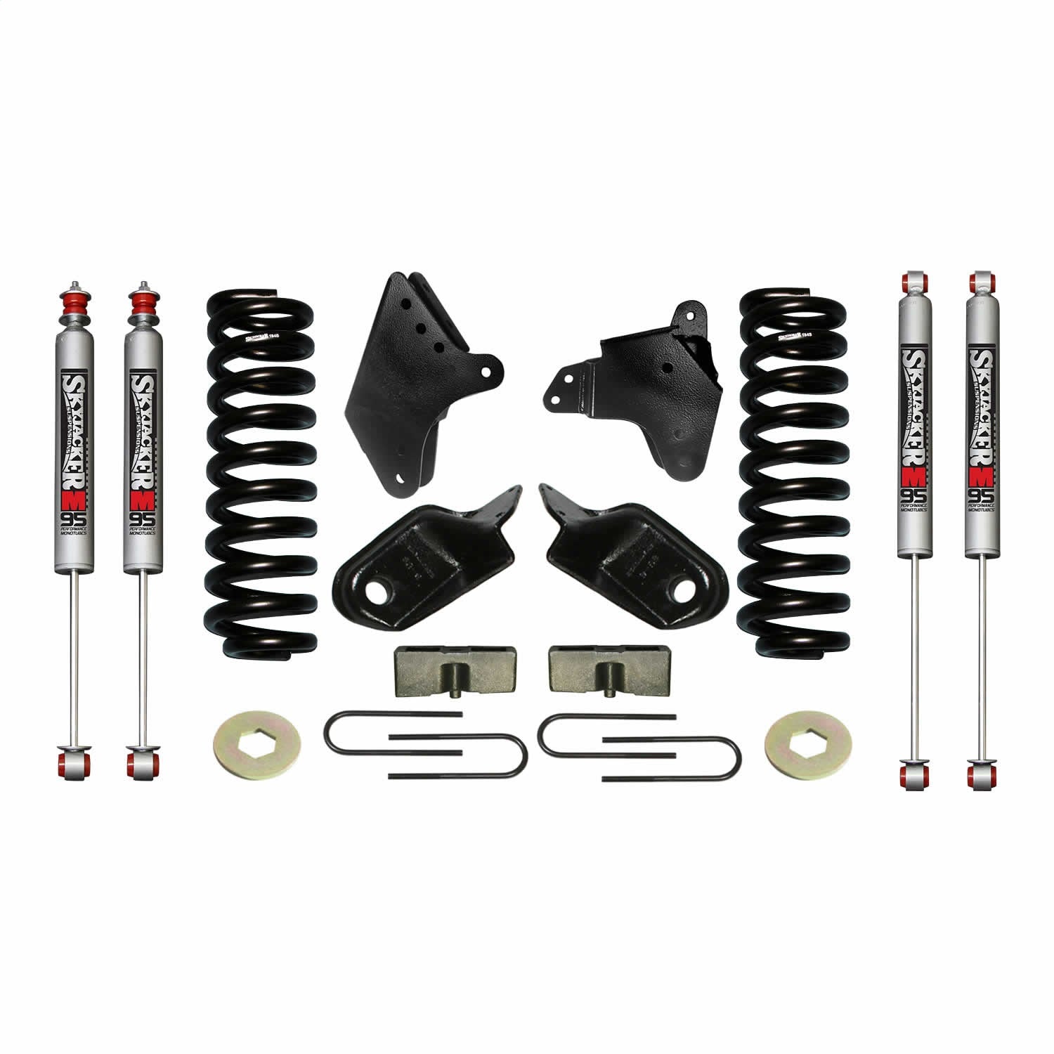 Suspension Lift Kit w/Shock; M95 Performance Shocks; 4 in. Lift; Incl. Front Coil Springs; Hinge Brackets; Rear U Bolt Kit; Rear Block;