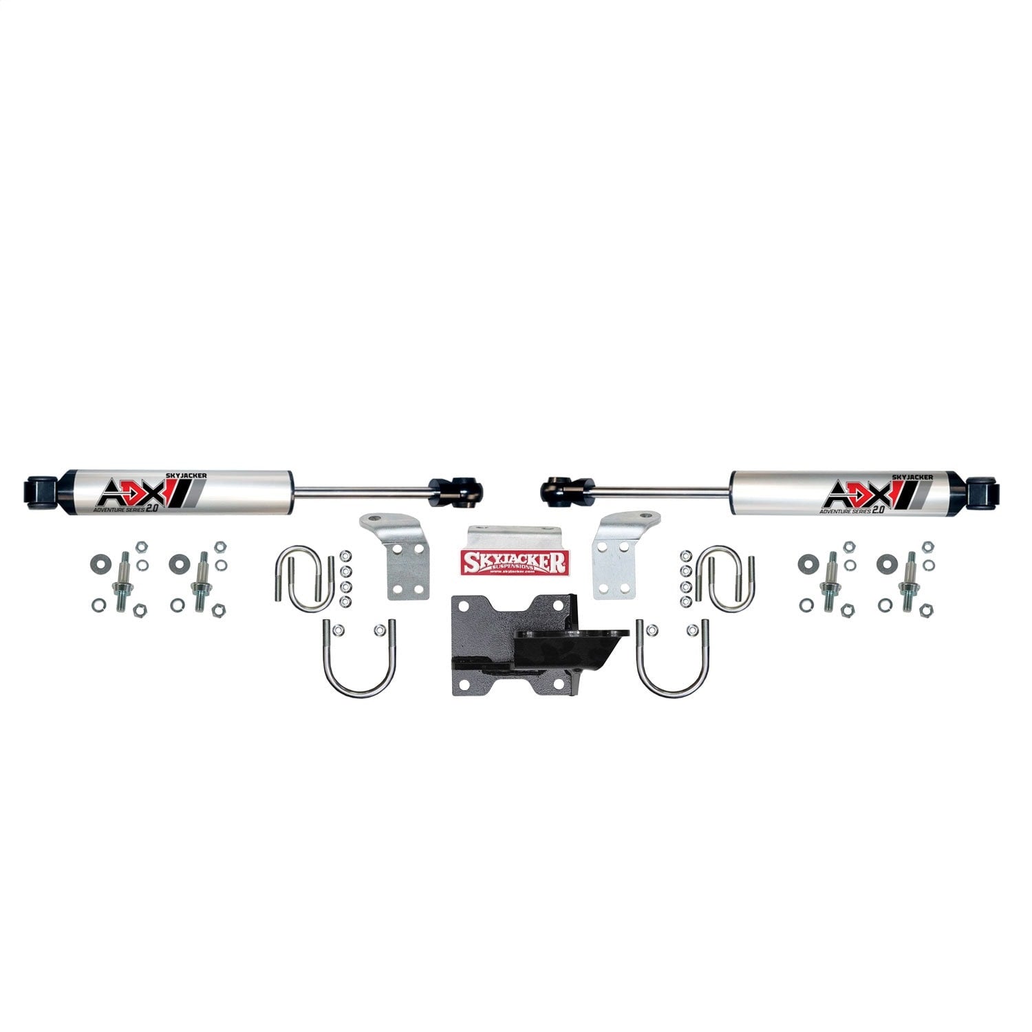 Skyjacker(R) Dual Steering Stabilizer is dampening shocks for your steering system. They dampen out the harshness of the highway and places control back into the driver's hands. Controlling the terrain helps reduce the physical fatigue of fighting the road. Improves steering response time and allows you to enjoy the drive. CNC machined 6061-T6 polished aluminum hard anodized cylinder body ADX 2.0 stabilizers with 30mm bore & 14mm piston rod provides specific valving needed with equal compression and extension damping performance. The dampening control also adds life to tires, tie rod, ball joints and other steering components. CNC machined 6061-T6 polished aluminum hard anodized body and caps for superior rust resistance. CNC machined 6061-T6 polished aluminum hard anodized body dissipates heat up to 30% faster than traditional steel body steering stabilizers. Internal high performance fade resistant gas cell yields longer life, improves handling, & performance.