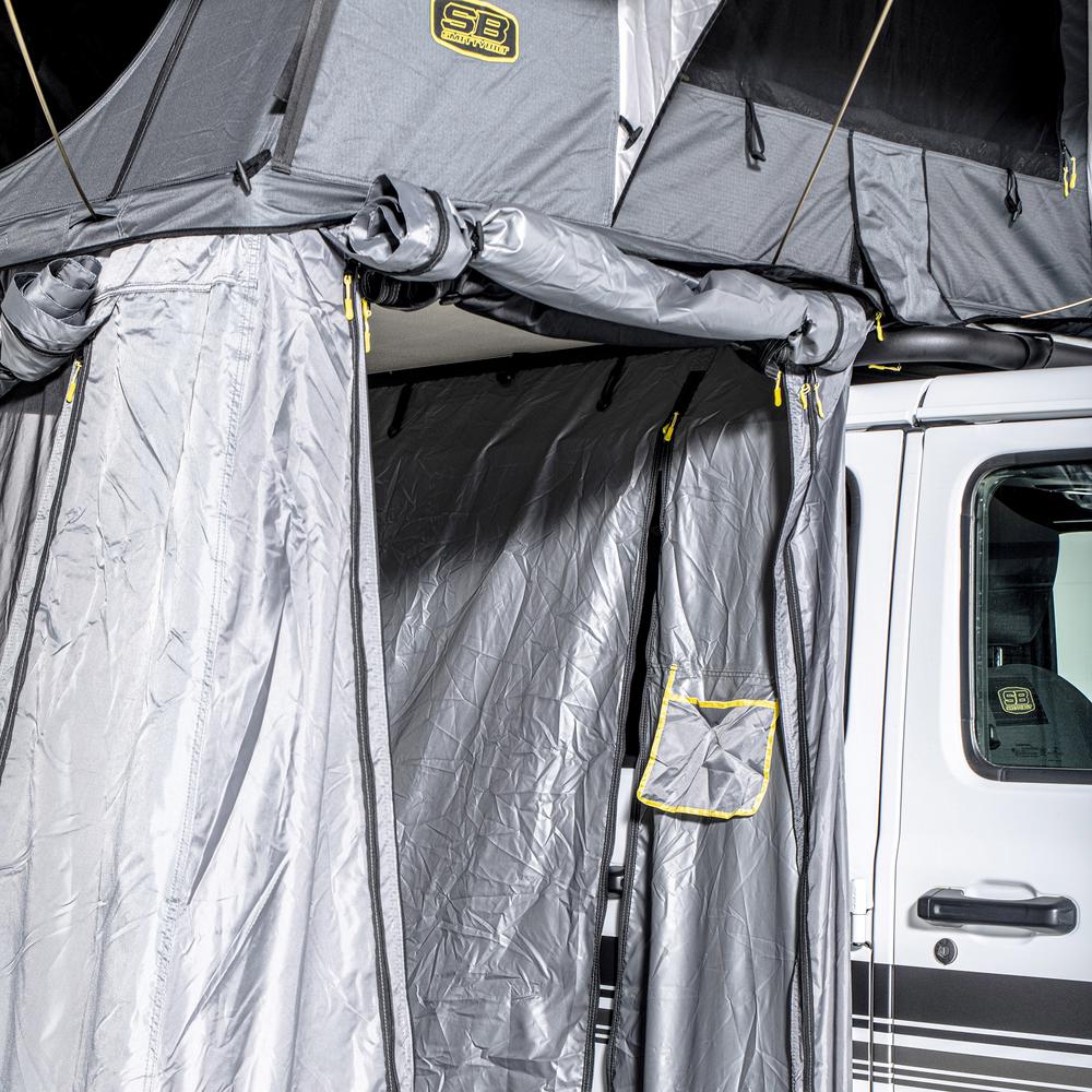 The Smittybilt Tent Annex is the perfect addition to your Smittybilt Overlander rooftop tent, providing extra space and privacy when you need it most. Easily attaching in minutes with rugged zippers, this annex is crafted from durable, polyurethane-impregnated polyester to withstand the toughest conditions during your overland adventures. Whether you're seeking extra room for gear or privacy, the Tent Annex enhances your camping experience with functionality and durability.