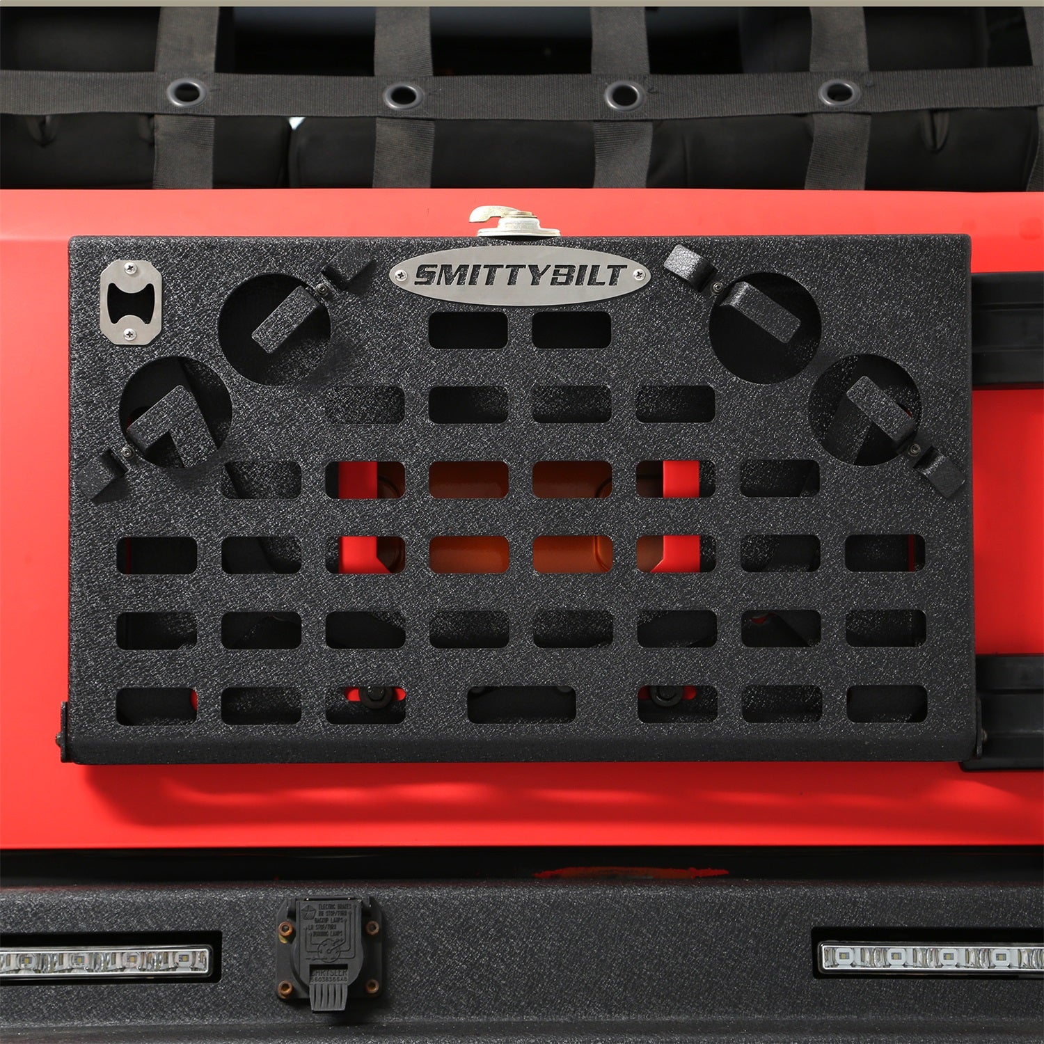 Simplify your camping experience with the Smittybilt JK Tailgate Table. Featuring built-in cup holders and a spacious surface, it keeps your food off the dirt and provides the perfect spot for your BBQ or small repair tasks.