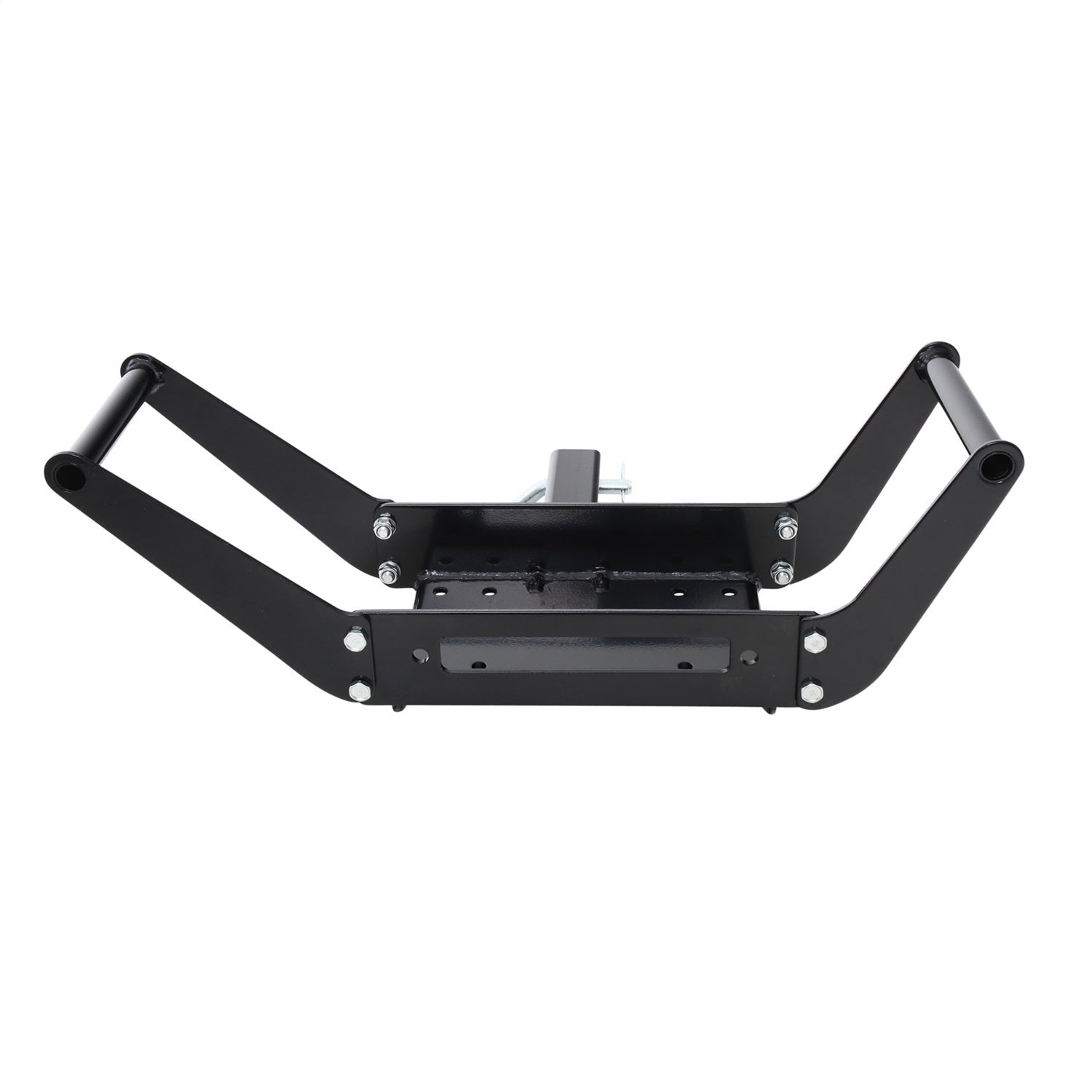 Smittybilt's winch cradle makes mounting a winch to your vehicle easier than ever. This heavy-duty cradle offers versatile mounting options for both front and rear installation, compatible with any 2" receiver hitch. Designed to accommodate most winches, it includes a mounting plate for your roller fairlead. Constructed from tough 3/16" and 1/4" cold-rolled steel, the cradle features a sleek two-stage satin black finish for maximum durability and style.