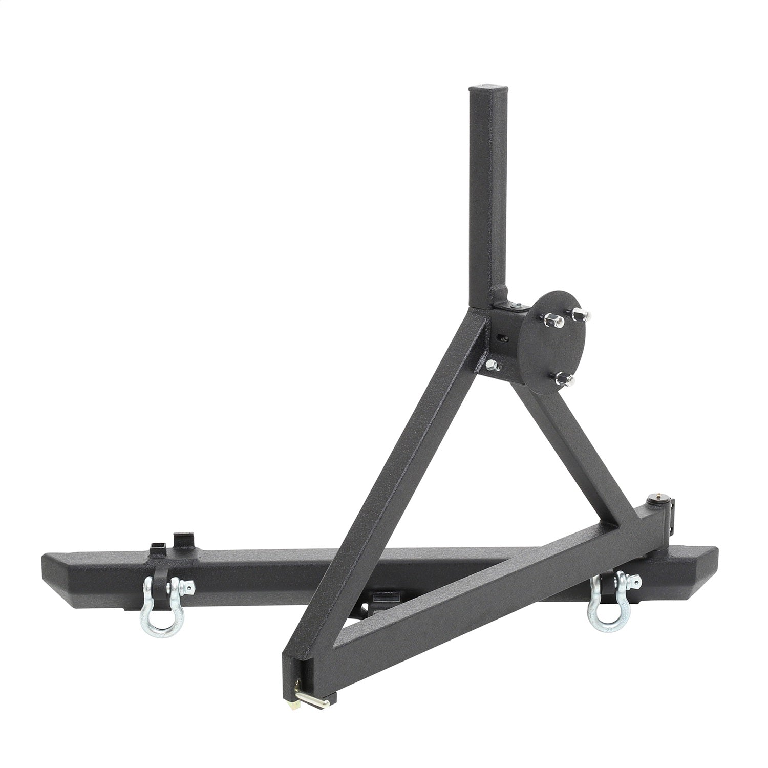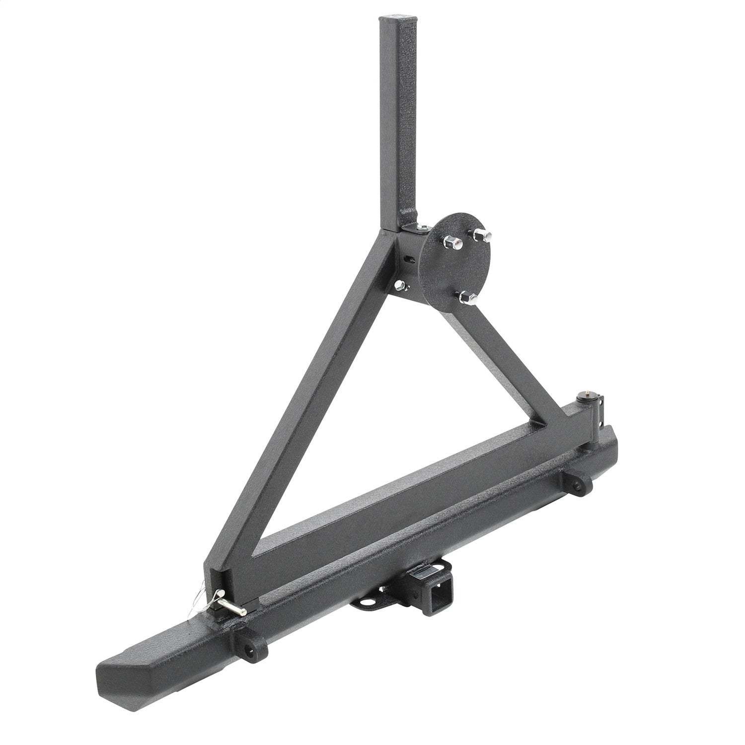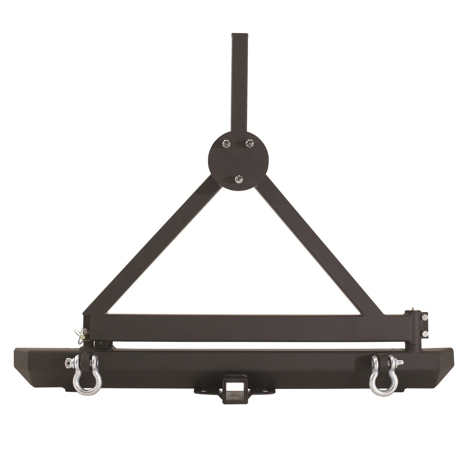The Perfect Add-On To Your Jeepâ(R) When You Have Oversized Tires. Original Jeepâ(R) Tailgates Are Unable To Support The Weight Of An Oversized Tire- Especially When You Are Off Road. This Bumper Mount Tire Carrier Takes The Load Off The Tailgate And Puts It On The Frame Mounted Bumper. Each Tire Carrier Incorporates Grease Fitting To Keep The Hinge Mechanism Running Smooth. Constructed Of The Finest Materials And Zinc Under-Coated, Dual Stage Durable Powder Coat Painted, This Heavy-Duty Off Road Design Is Built To Last. Will Hold Up To 35 in. Tire. Available In Textured Black Only.