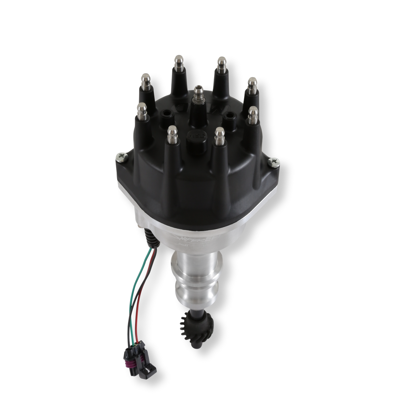 - CNC billet aluminum distributor housing provides strength and protection