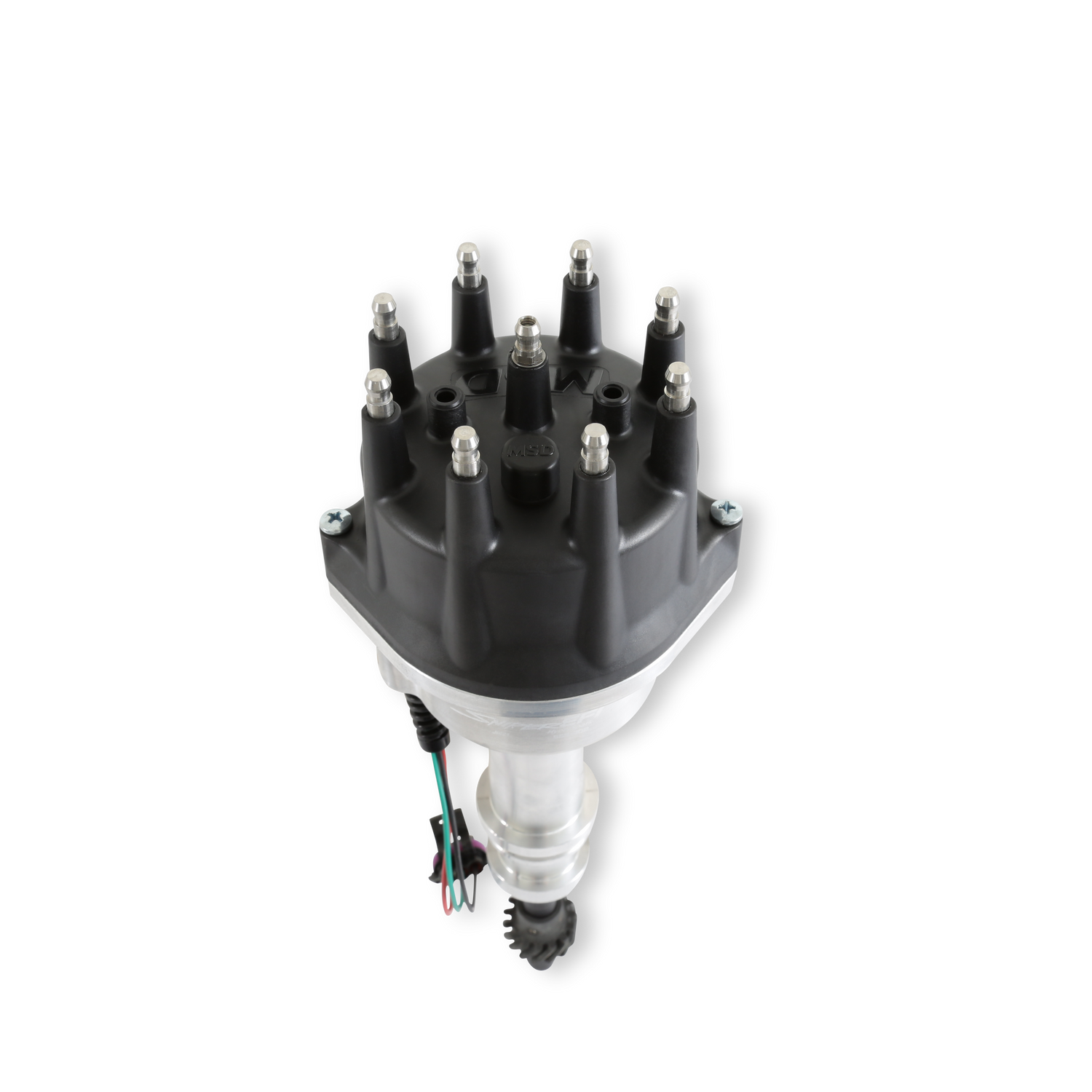 - CNC billet aluminum distributor housing provides strength and protection