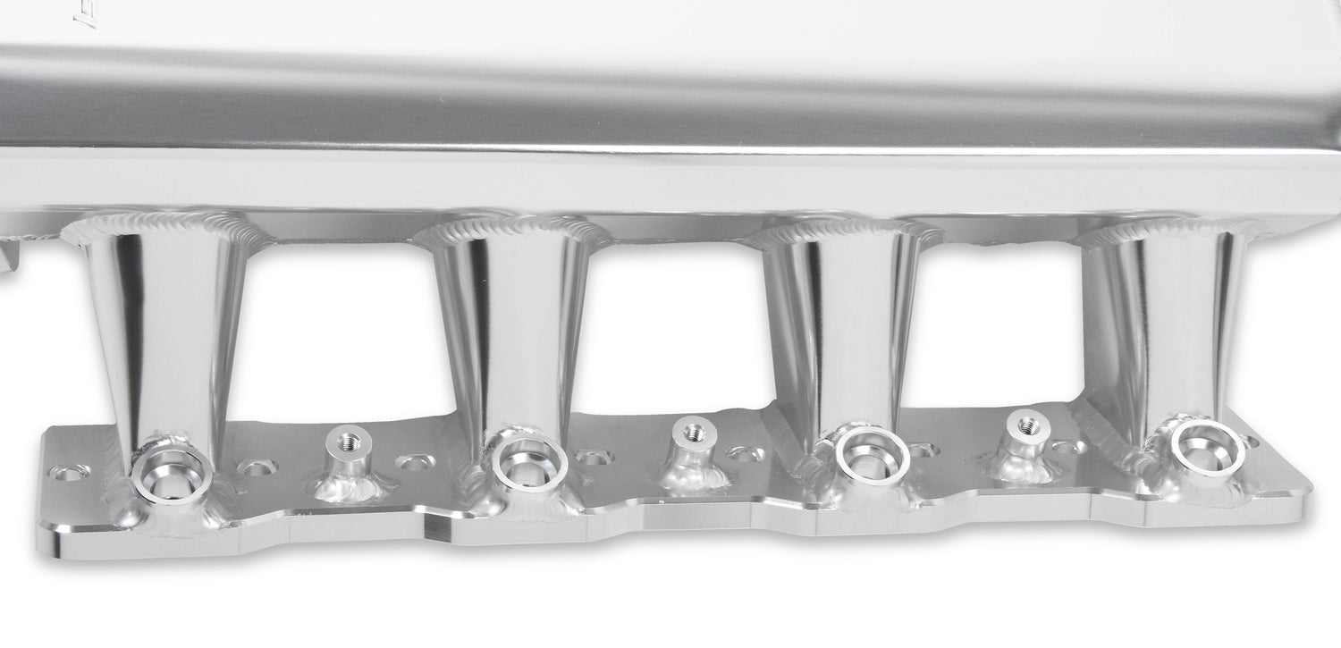 - Intake runners with tapered top is designed to increase air velocity and more evenly distribute airflow to all 8 cylinders improving performance and throttle response