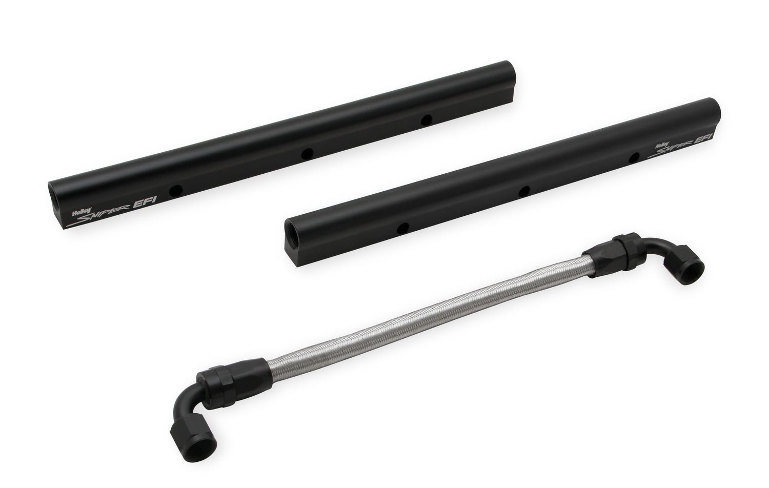 These intake are finished in our familiar silver and black anodized finishes for durability and good looks. Our 3/8" fuel rail kit include a laser engrave Sniper logo and are capable of supporting 750+ horsepower.