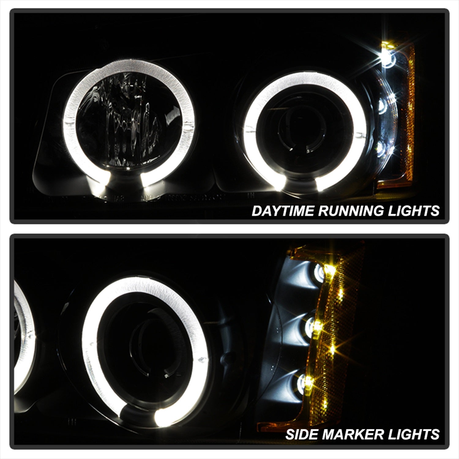 Halo LED Projector Headlights; Replaceable LEDs; High H1/Low H1 Included; Will Not Fit Models w/Body Cladding; Black Smoke;