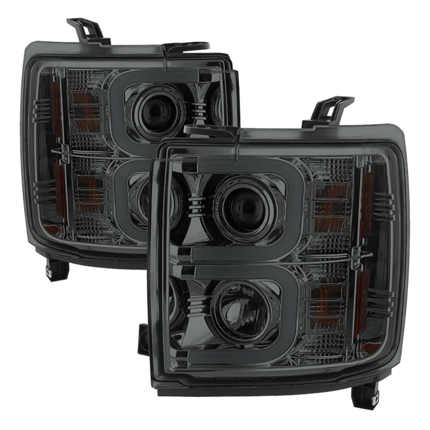 Spyder 5081056 - Chevy Silverado 14-16 2500 HD Projector Headlights Light Bar DRL Smke PRO-YD-CSHD14-LBDRL-SM