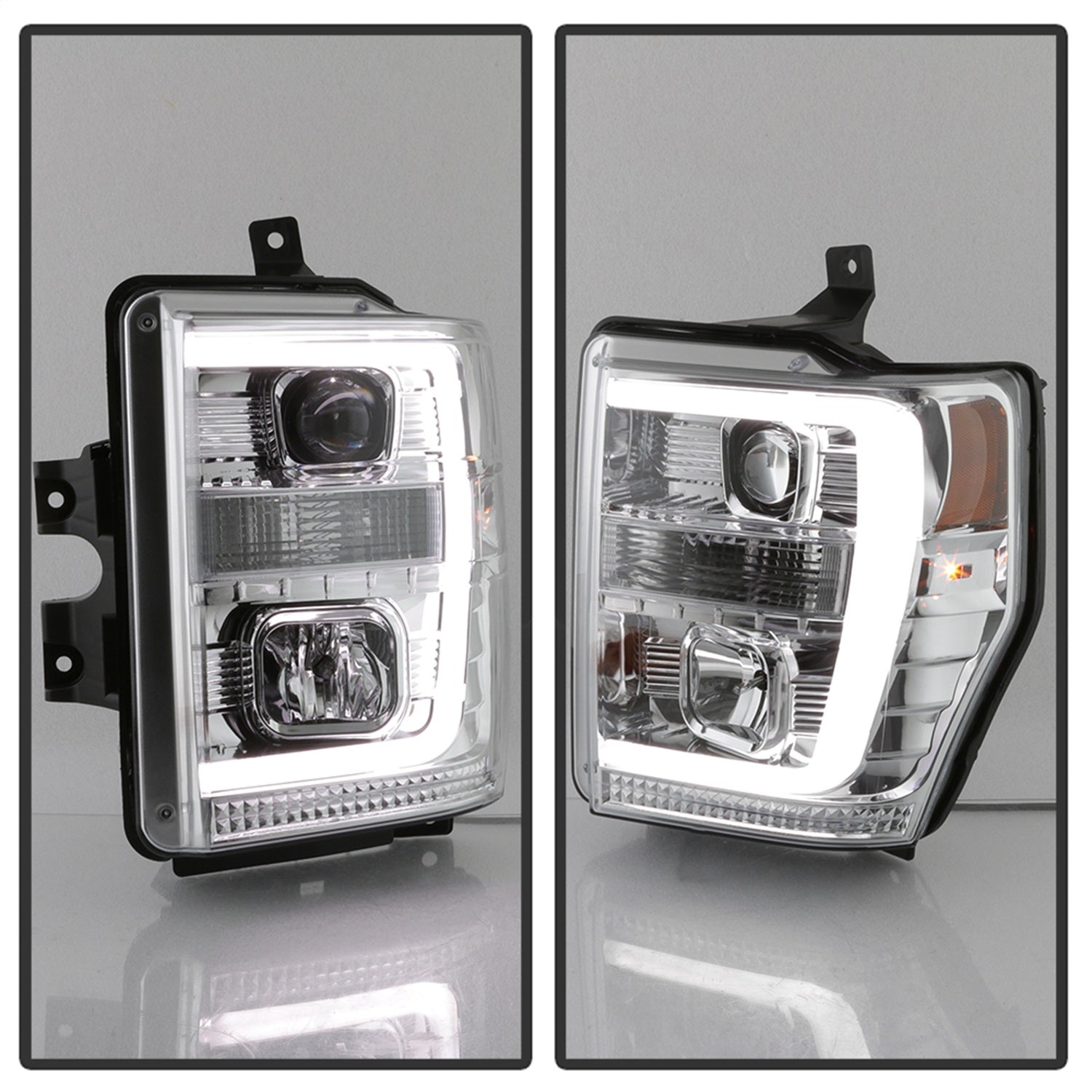 Spyder 5084699 - 08-10 Ford F-250 Super Duty V2 Light Bar DRL Projector Headlights - Chrm (PRO-YD-FS08V2-LB-C)