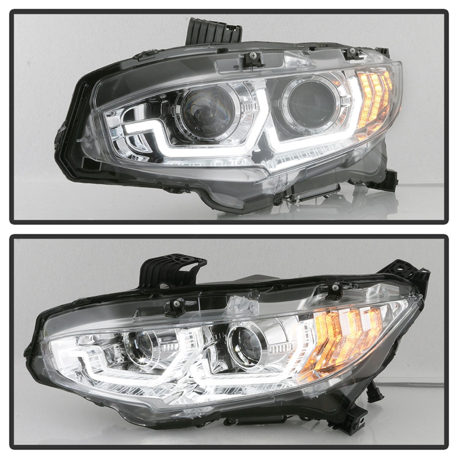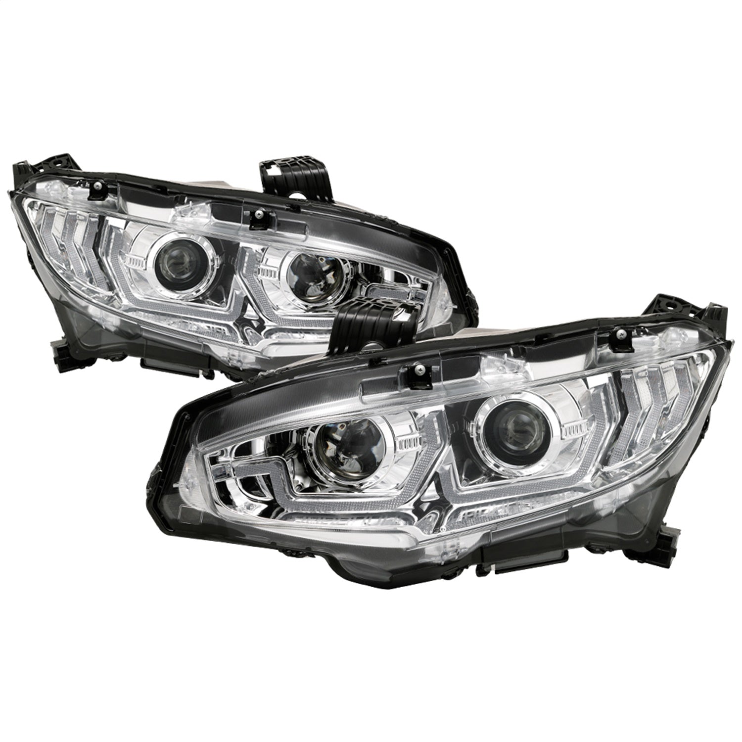 Spyder 5086082 - 16-18 Honda Civic 4Dr w/LED Seq Turn Sig Lights Proj Headlight - Chrome - PRO-YD-HC16-SEQ-C