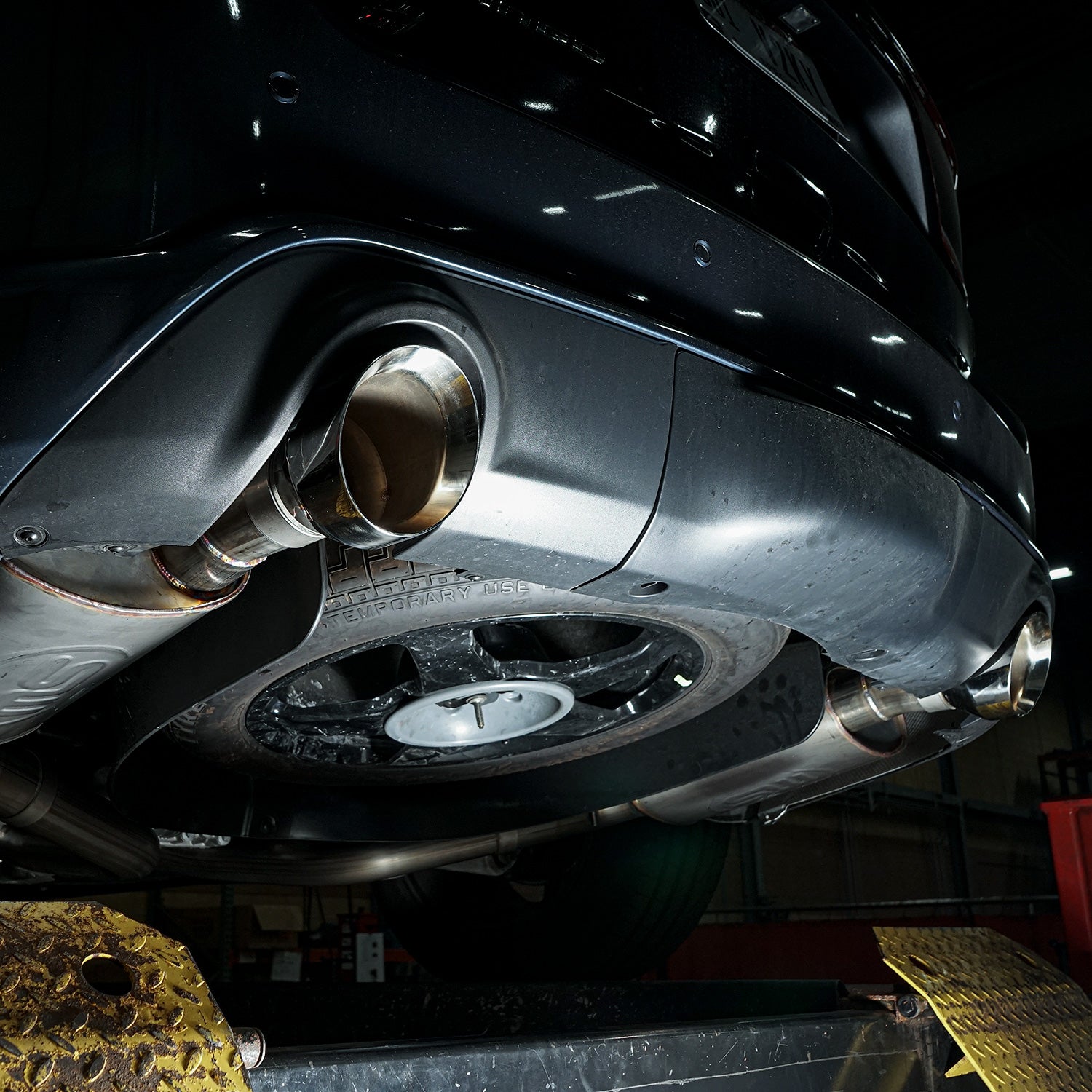 2018-20 Dodge Durango SRT 6.4L, 304 stainless steel, 3" Legend exhaust, polished tips, dual turbo custom mufflers engineered a drone free aggressive muffler tuned specifically for the 6.4L engine. This comes with a factory connection point.