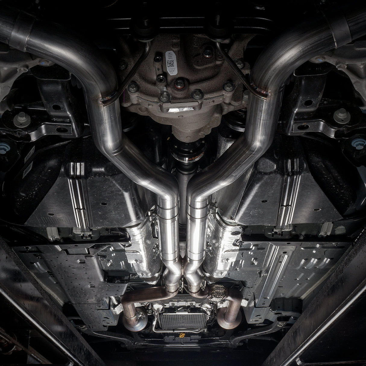 2018+ Mustang GT 5.0L, stainless steel, 3" exhaust, chambered mufflers, X-pipe.