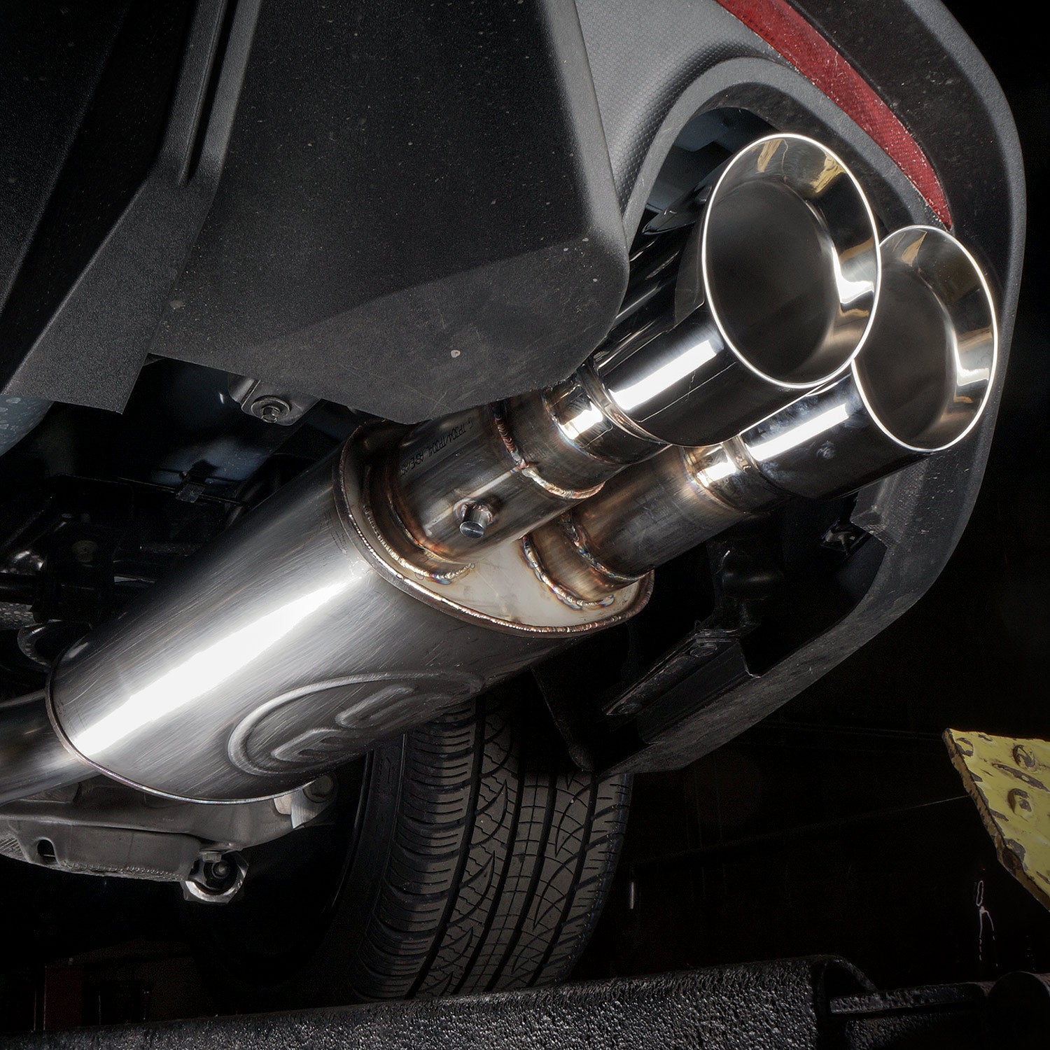 2018+ Mustang GT 5.0L, 3" Catback Dual Exhaust with X-pipe. Improve sound and performance on your Mustang GT with this Redline catback exhaust from Stainless Works. Redline series, designed to get the most aggressive sound out of your GT, we've designed these mufflers to maximize the volume and tone of that 5.0L V8 while still eliminating any drone in the cabin. Featuring, the latest in active exhaust technology, our in-house engineered valve bolts directly to the factory electronics to allow for all exhaust modes. All tubes are CNC mandrel bent for optimal flow. Made from 304 stainless steel for maximum corrosion resistance. This system features dual-mode mufflers with a 3" valve assembly, with straight through "Track" mode and chambered "Quiet" mode. This is a quad tip exhaust, exiting through our 4" slash cut conical double wall polished tips. Includes hangers and clamps and mates to the factory connection point. This system is designed for vehicles with the Active Valve Performance Exhaust. Mill finish, All TIG welded for strength and durability. These kits come with a lifetime warranty and proudly made in the USA. Not confirmed to fit convertibles.