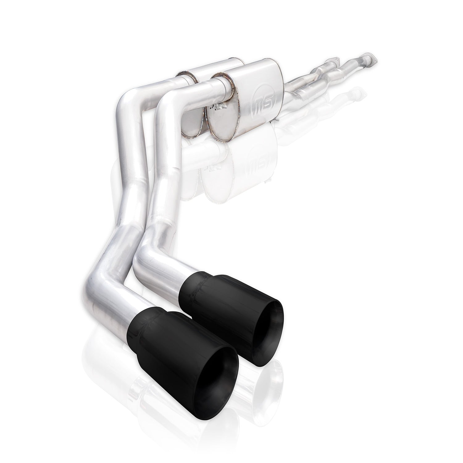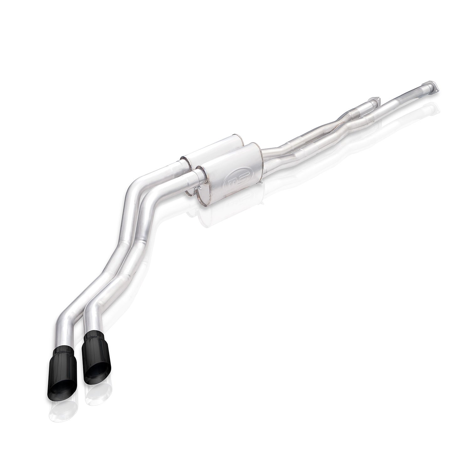 2014-20 Toyota Tundra 5.7L, 304 stainless steel, 3" Redline exhaust, black tips, dual turbo custom mufflers engineered a drone free aggressive muffler tuned specifically for the 5.7L engine. This comes with a factory connection point.