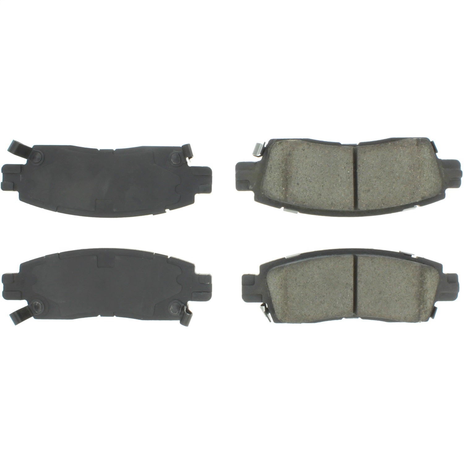 Pads are scorched to aid in rapid bed-in and perform from the first stop. Precision cut backing plates and application-specific pad shims help eliminate noise. Positive-molded pads insure consistent braking performance.