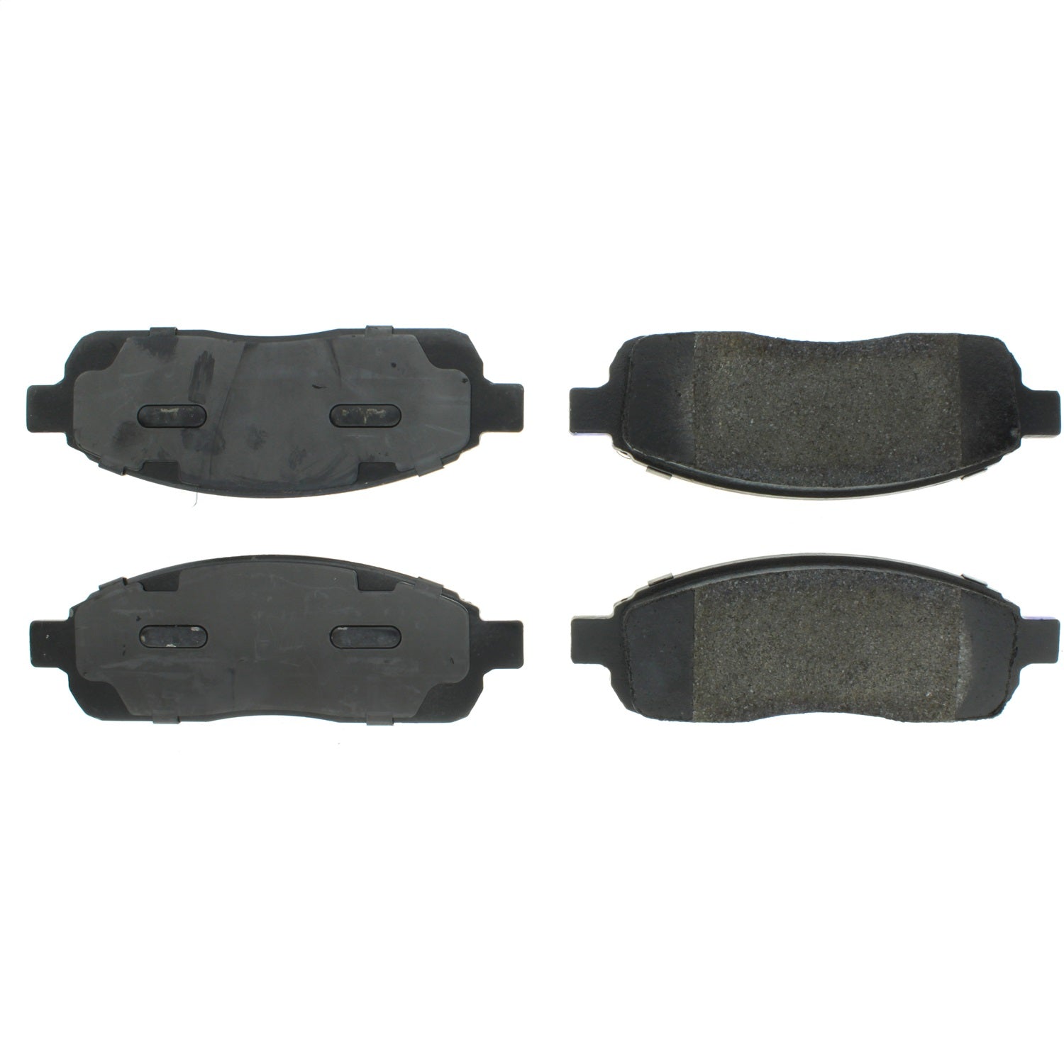 Pads are scorched to aid in rapid bed-in and perform from the first stop. Precision cut backing plates and application-specific pad shims help eliminate noise. Positive-molded pads insure consistent braking performance.