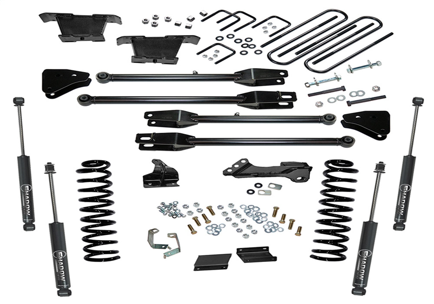 - Incl. Front Coil Springs; Track Bar Bracket; 4 Link Arms