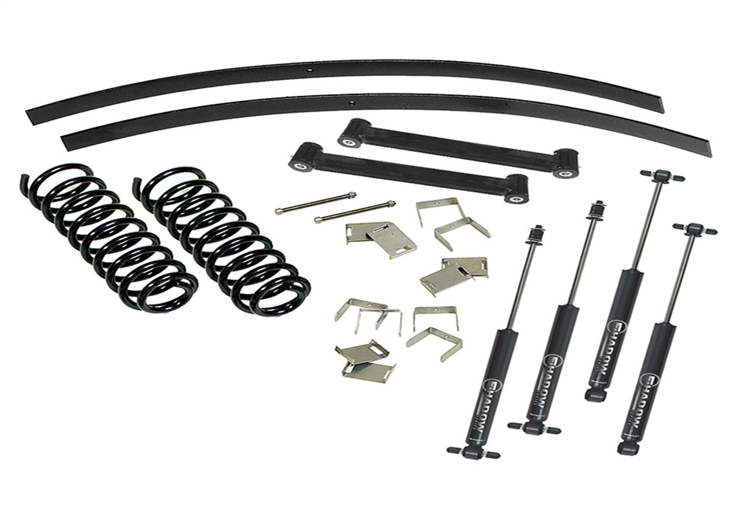 - Incl. Springs; Control Arms; Shocks; Rear Add-A-Leaf; Hardware