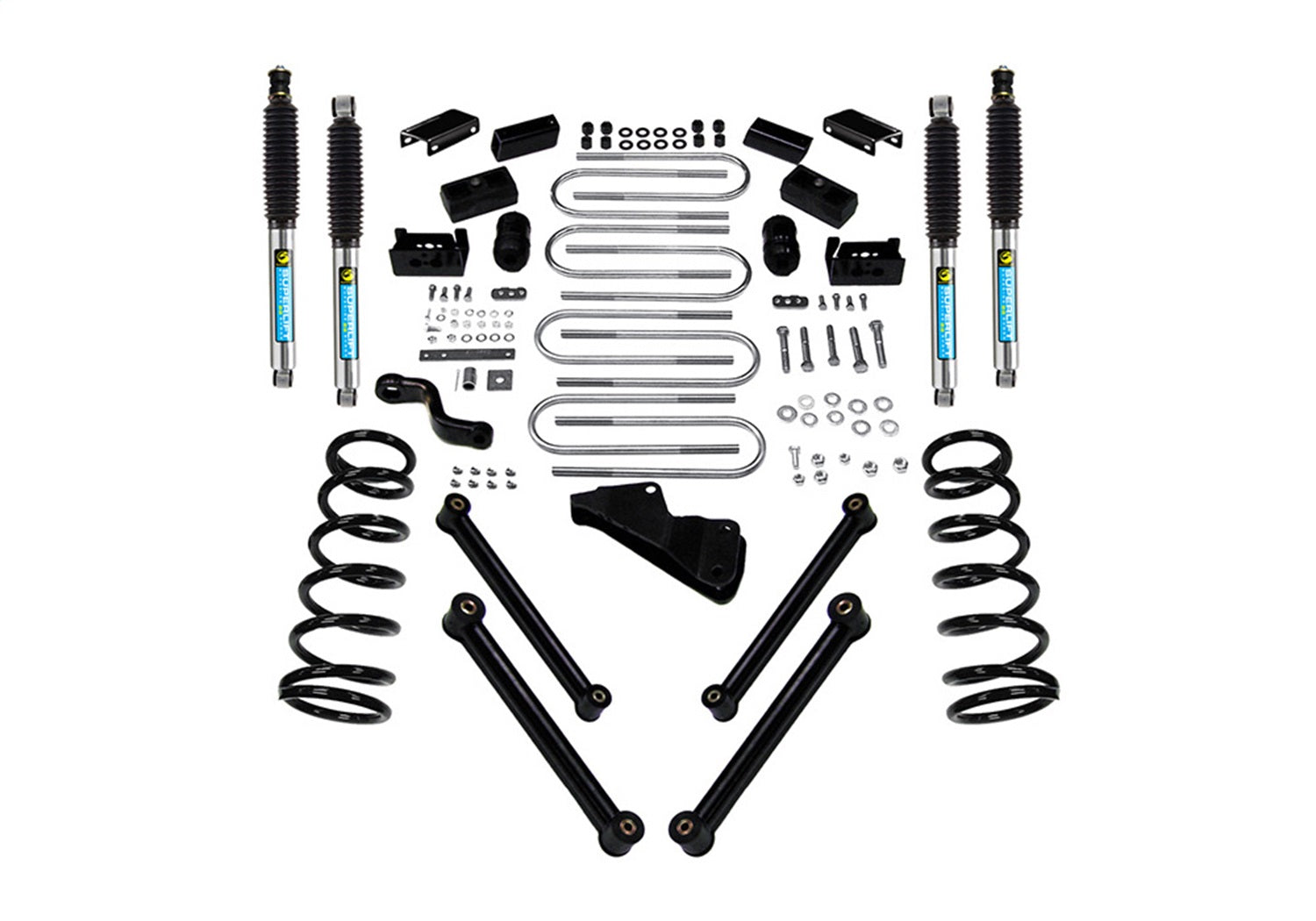 - Incl. Shocks; Coil Springs; Control Arms; Front Track Bar Bracket