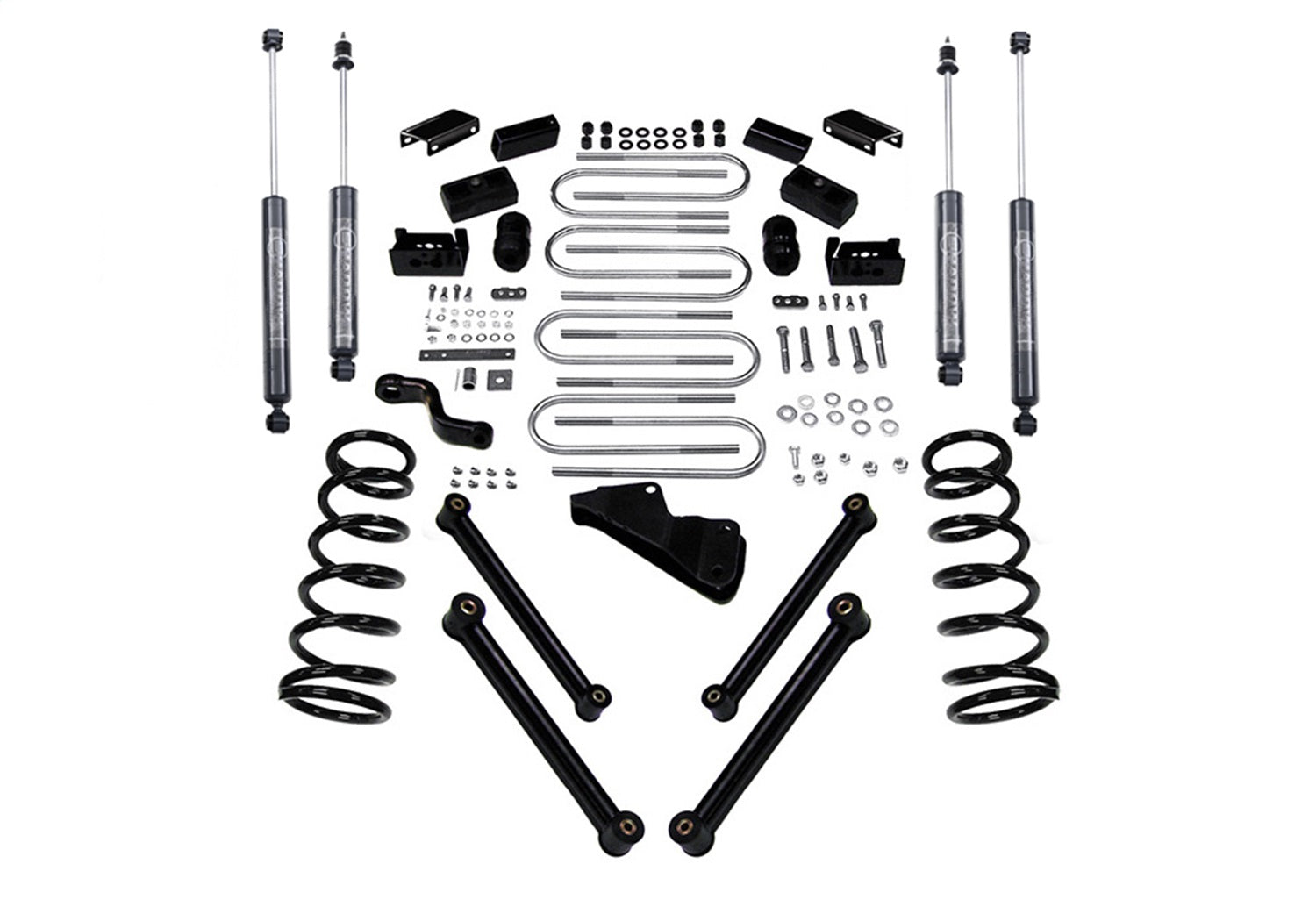 - Front Coil Springs; Track Bar Bracket; Upper/Lower Control Arms
