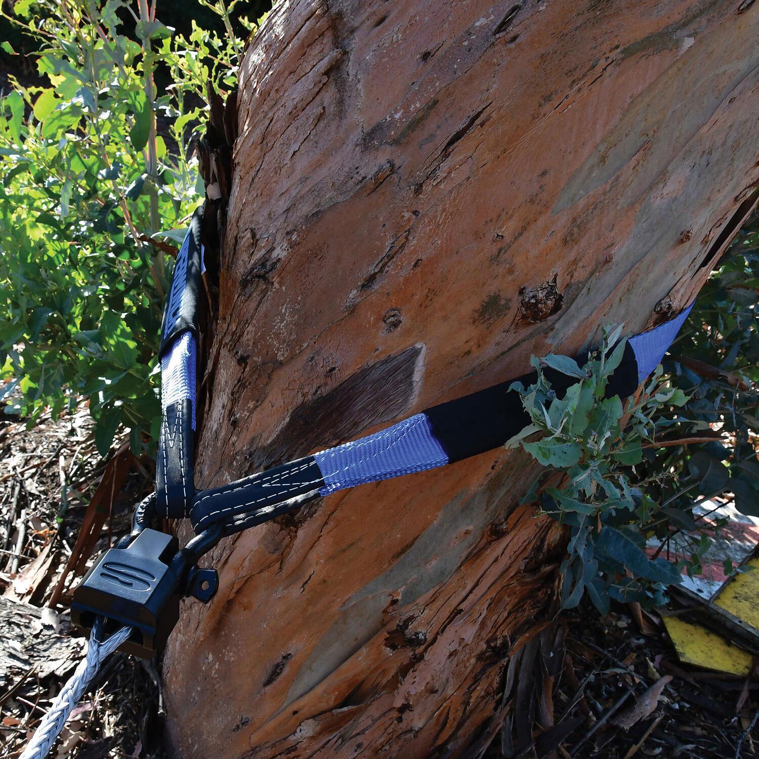 Allows you to use the strength of a tree root system as an anchor, and use the trunk protector as a rigging strap to secure winch straps and D-rings. Safely protects the tree and environment while utilizing the accessability of nature to provide leverasge and a winching anchor when available.