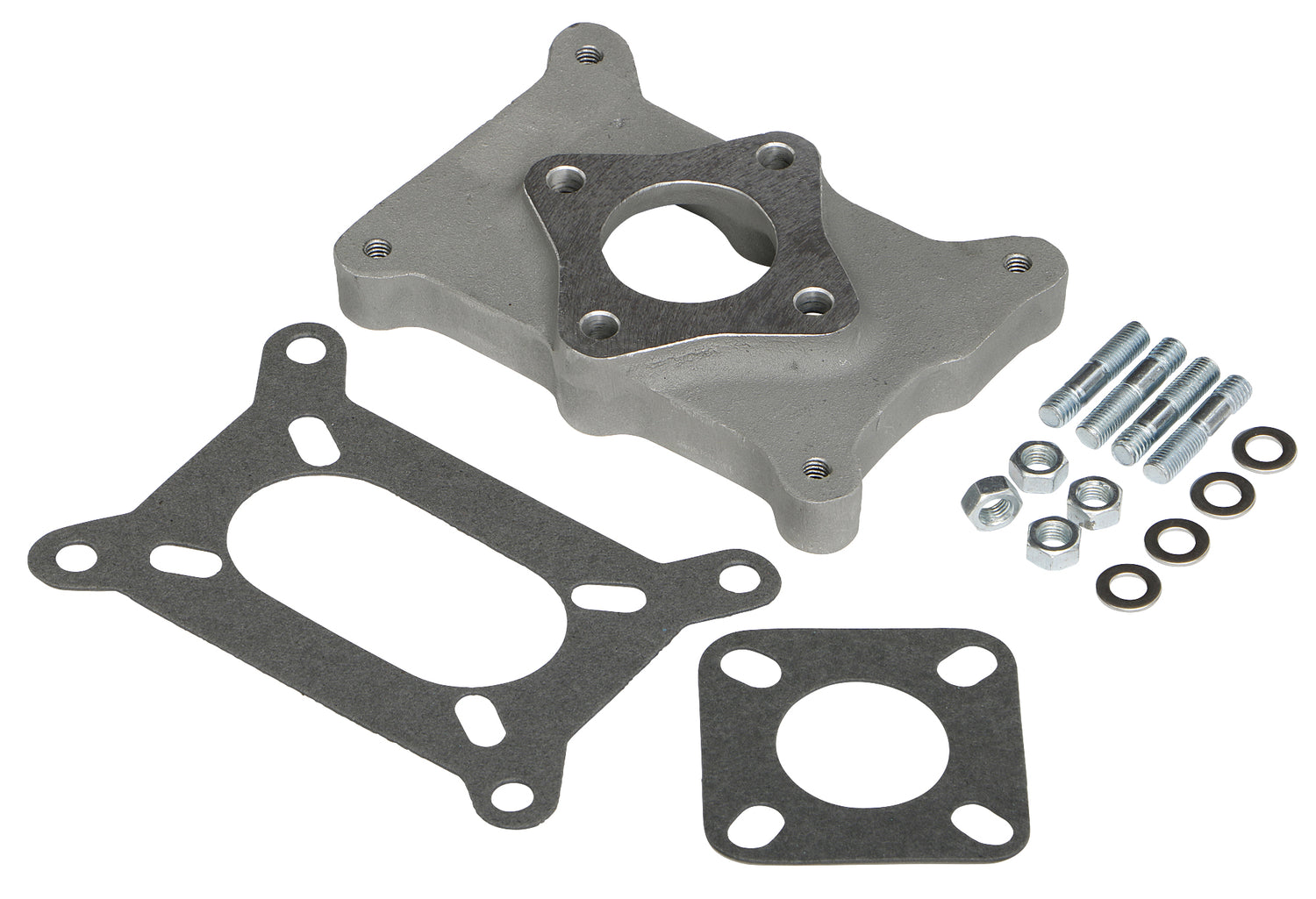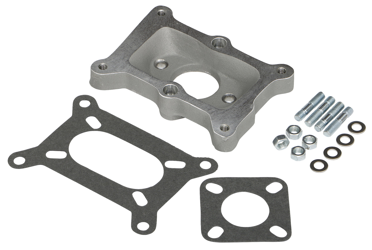 Carburetor Adapter - 1.25 in Thick - Open - Holley 2-Barrel to Large 1 Barrel - Gaskets / Hardware Included - Aluminum - Natural - Each