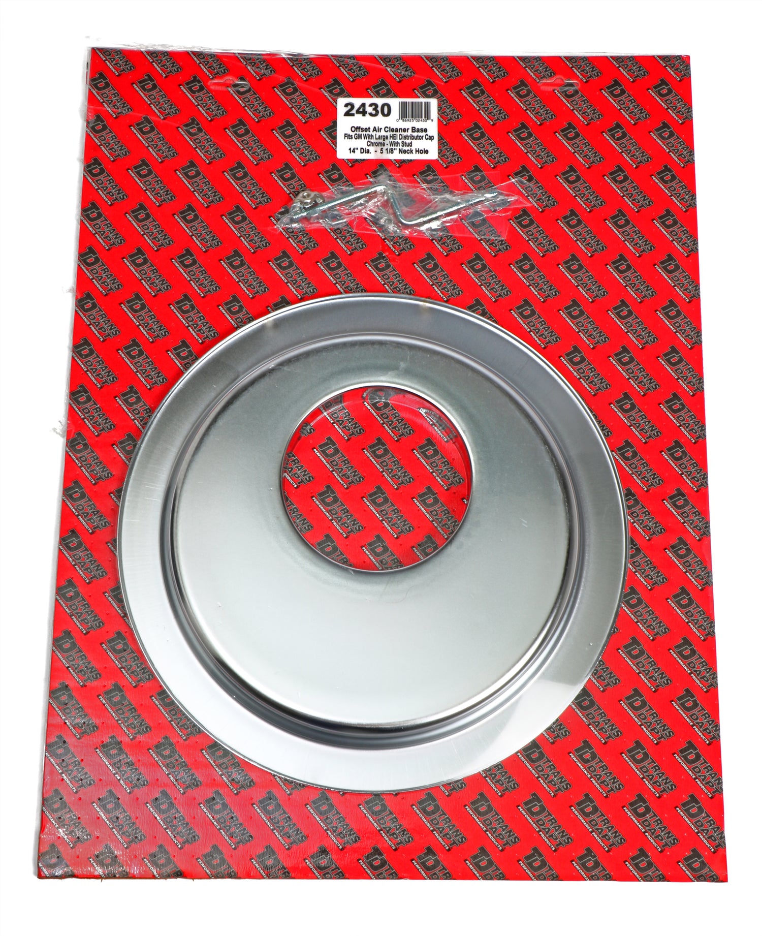 Trans-Dapt Performance 2430 - FLAT, OFFSET AIR CLEANER BASE (GM WITH LARGE HEI); 14 IN. DIAMETER; 5-1/8 IN. NECK- CHROME