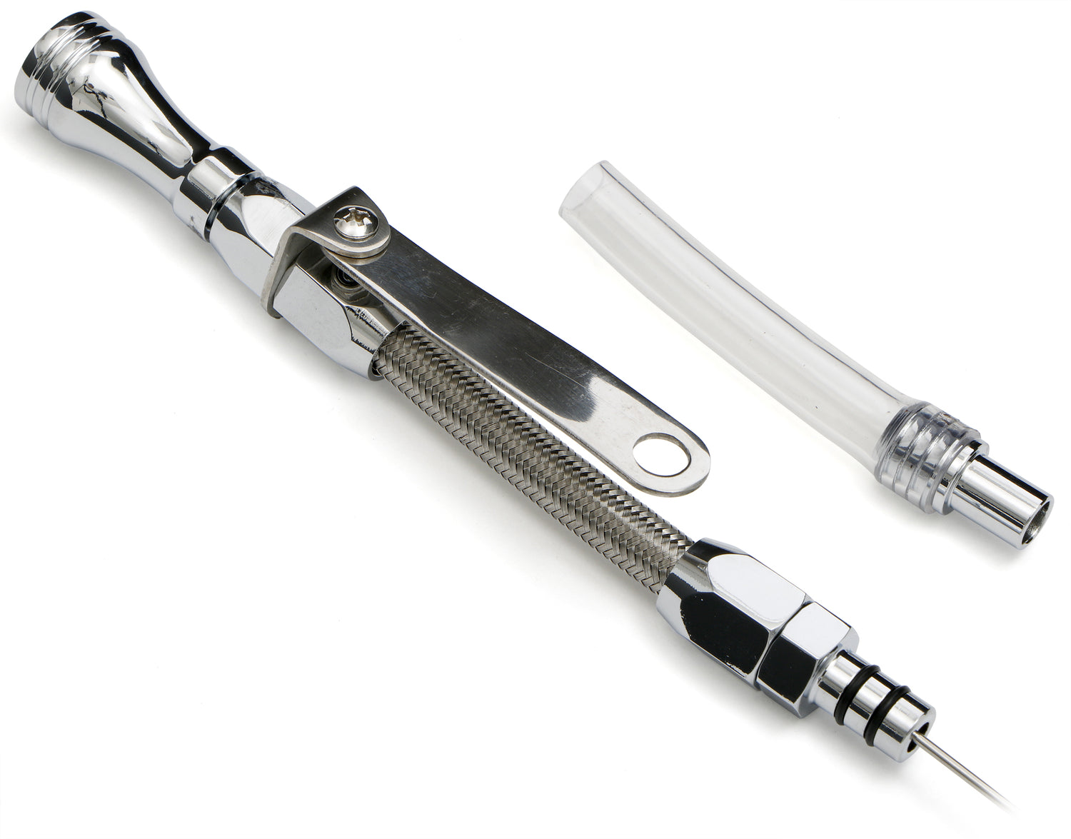 Engine Oil Dipstick - Flexible - Block Mount - 20 in Long - Braided Stainless - Aluminum - Polished - Small Block Chevy - Each